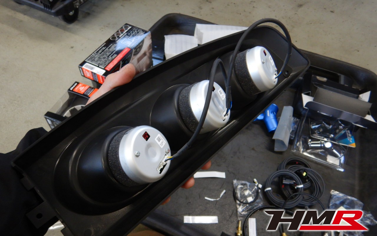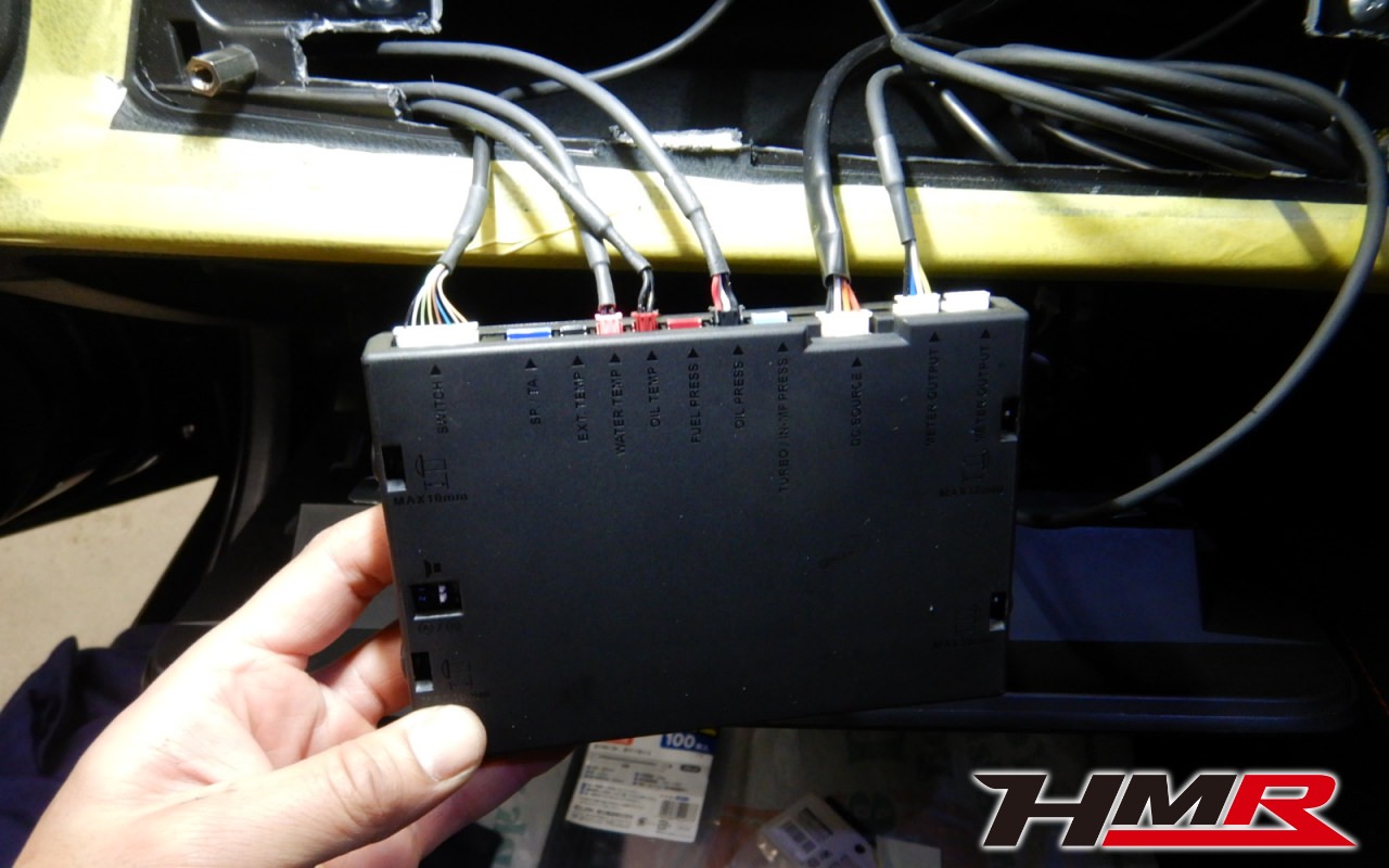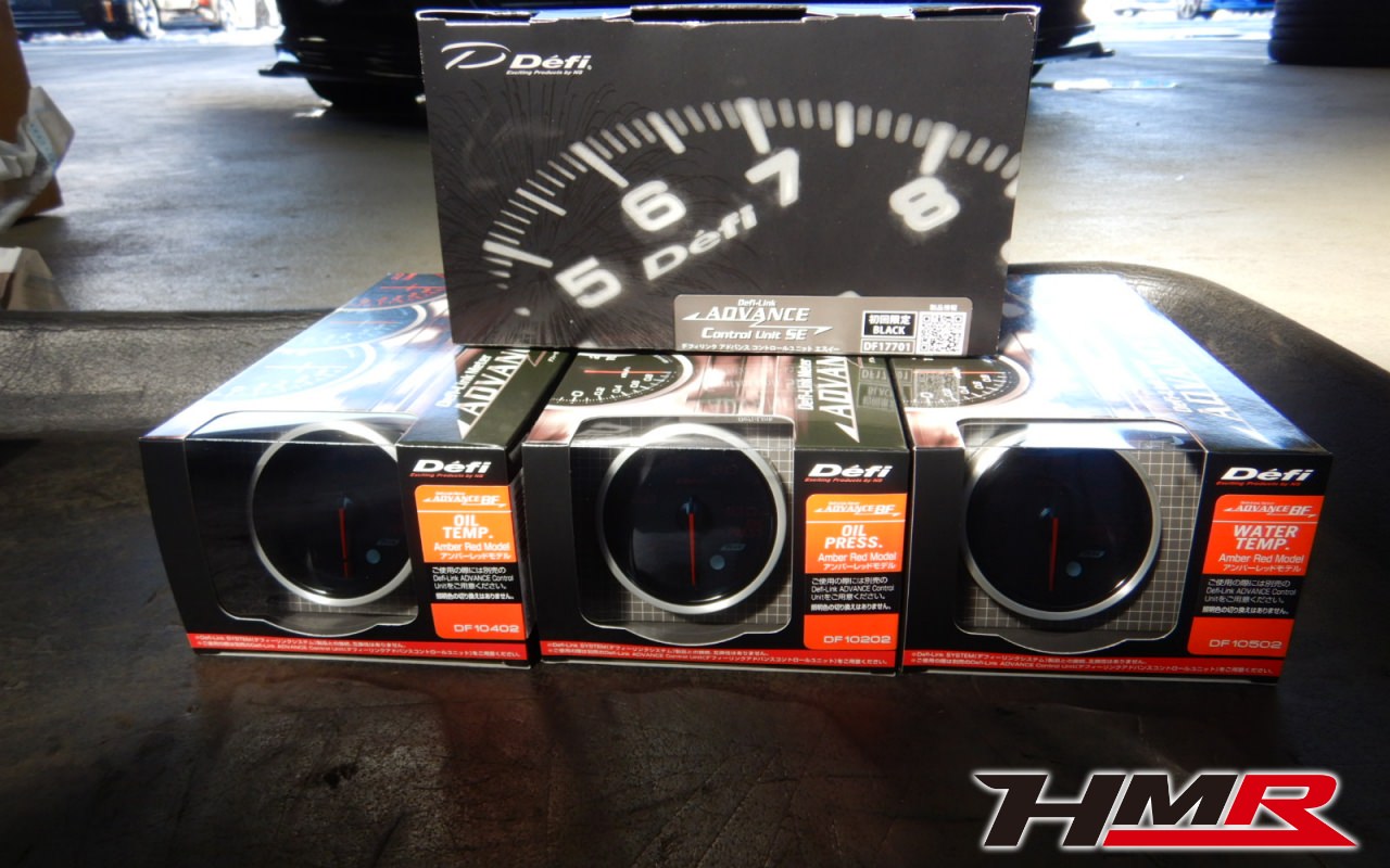 取り付けする追加メーターはDefiのアドバンスDFの油温計、油圧計、水温計です。その上にあるのがアドバンス・コントロールユニットでここに各センサーの信号を受け取ってメーターに反映させます。