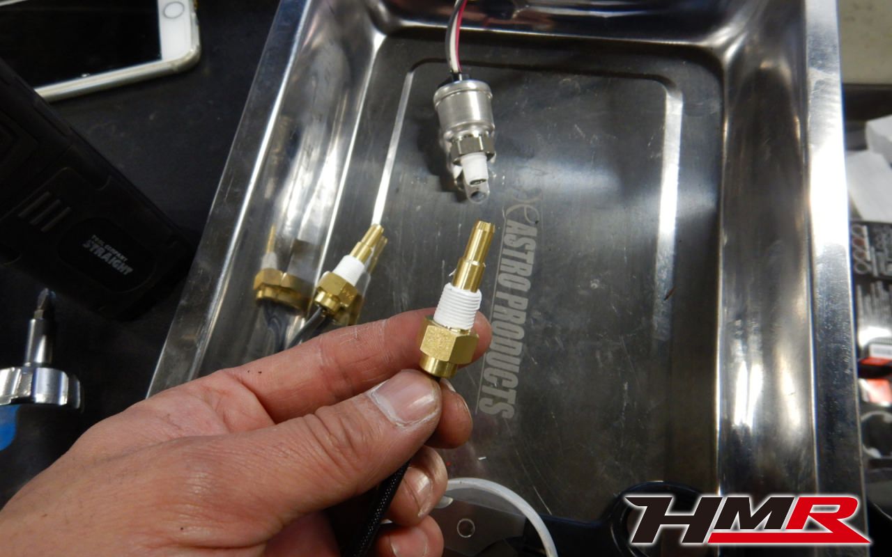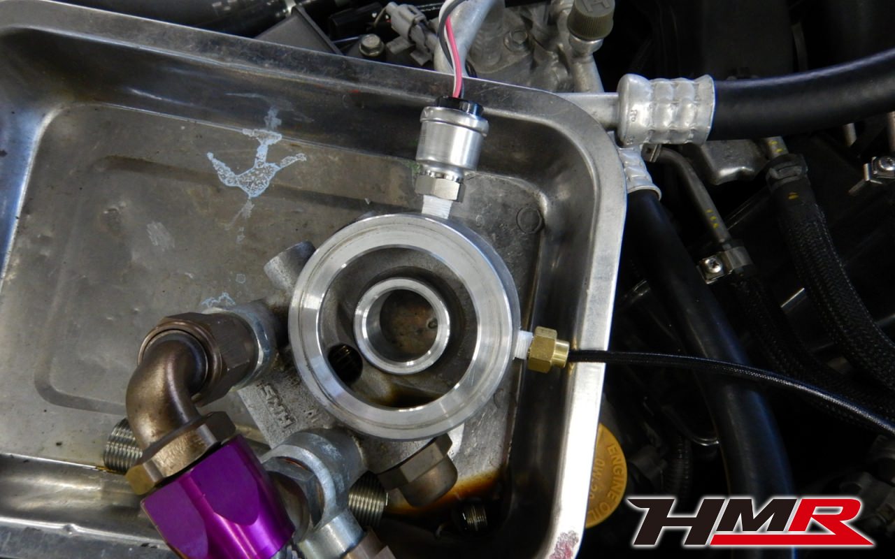 次にエンジンルームに移動して、各センサーを取付けていきます。まずは油温・油圧です。