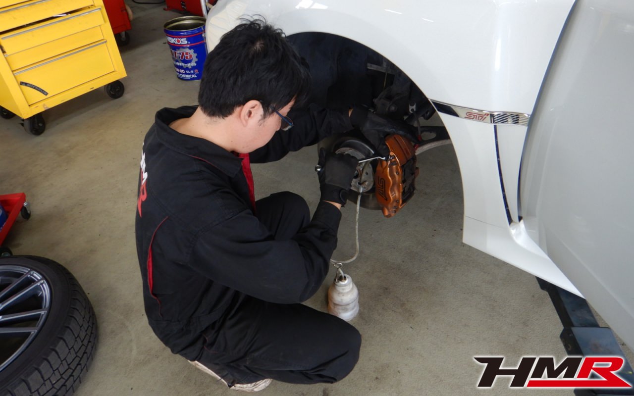 HMR(エイチエムアール)の栗原です。今回はエンケイ製純正18インチ HKSマフラー装備のインプレッサハッチバックSTI 2.0 WRX スペックC (GRB)の納車前点検整備を行いました。担当メカニックは手代木です。
