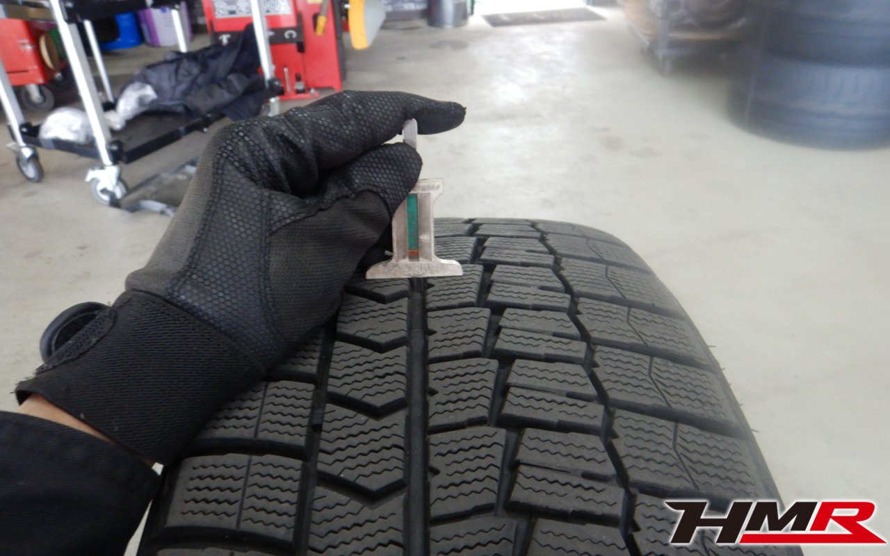 タイヤ溝の残量は、スタッドレスタイヤがフロント・リアともに9mm、NS-2はフロント・リアともに8mmでした。