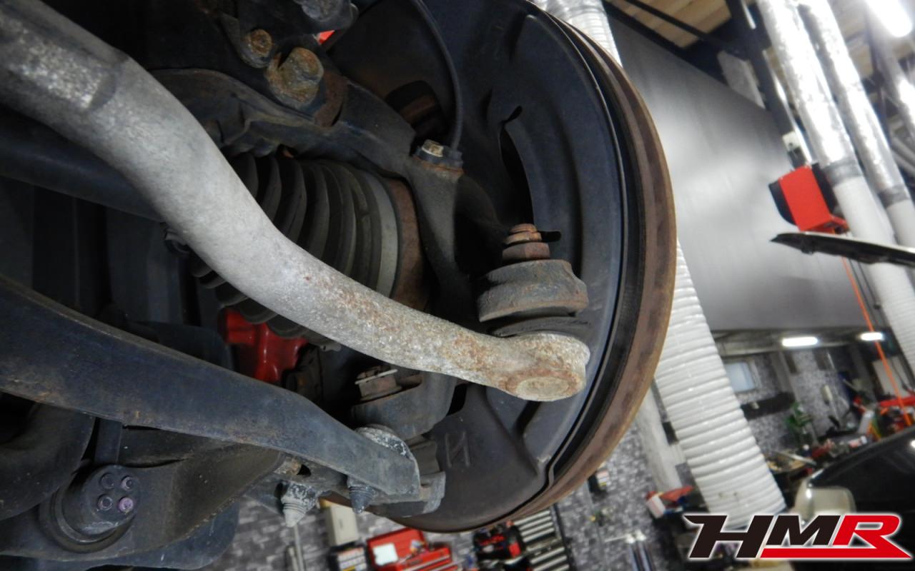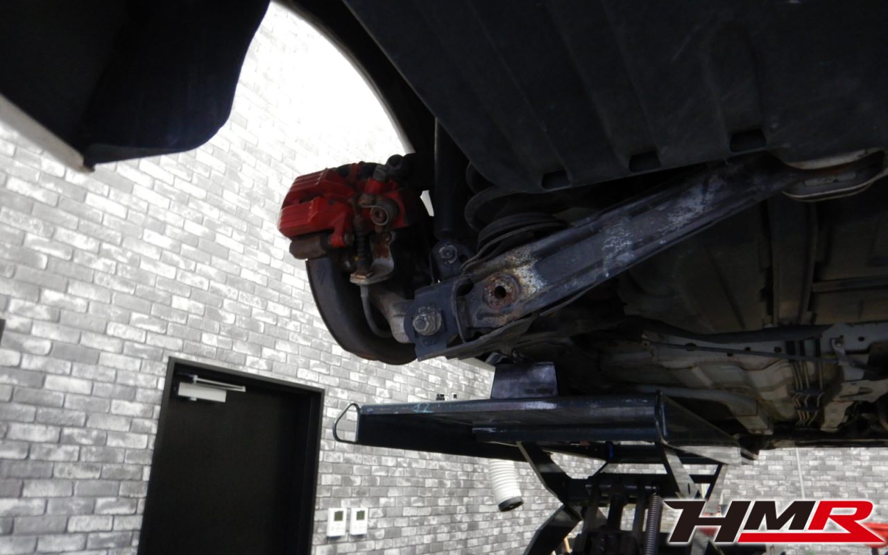 ハブベアリング・ボールジョイント、アーム・リンク類のガタ、ブッシュ・ブーツ類の劣化、エンジン・ミッション・デフからのオイル漏れと各マウント類、タイヤ溝の残量、空気圧の点検しました。