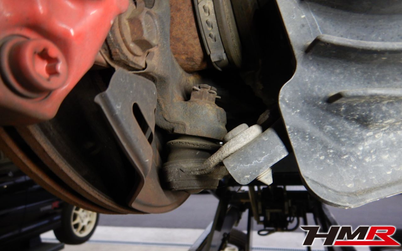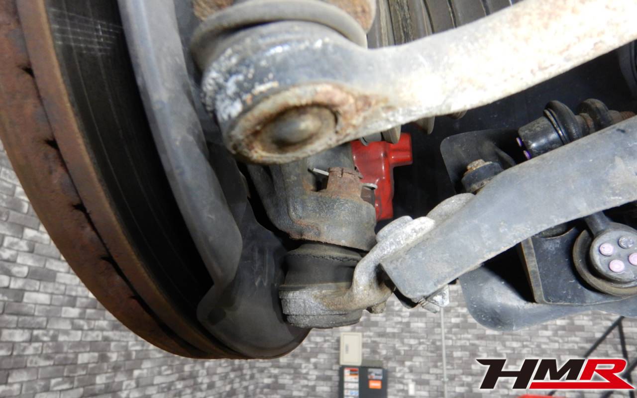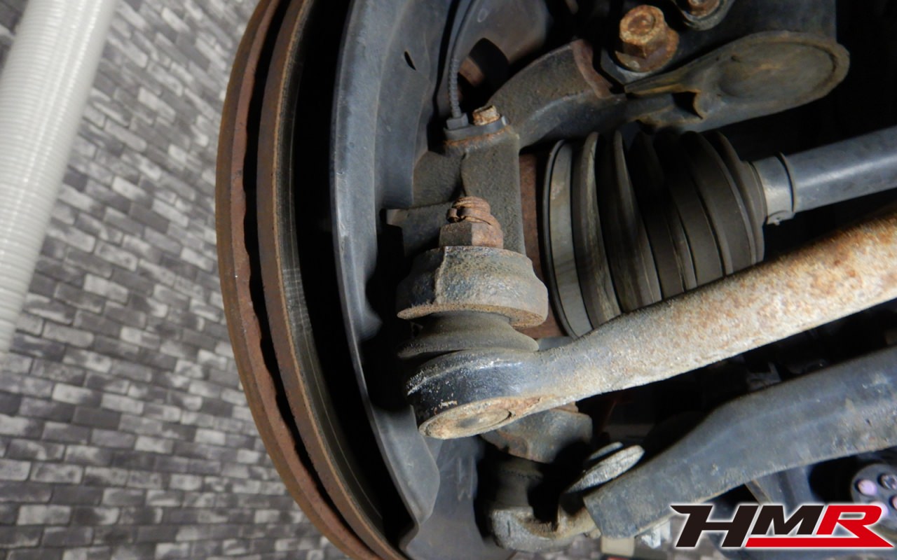 タイロッドエンド左右ブーツ、フロントロアアーム左右ブーツ、左右ロアアームブッシュにヒビが見つかりました。今回はフロントロアアームブーツは劣化が大きいので後ほど交換させていただきました。