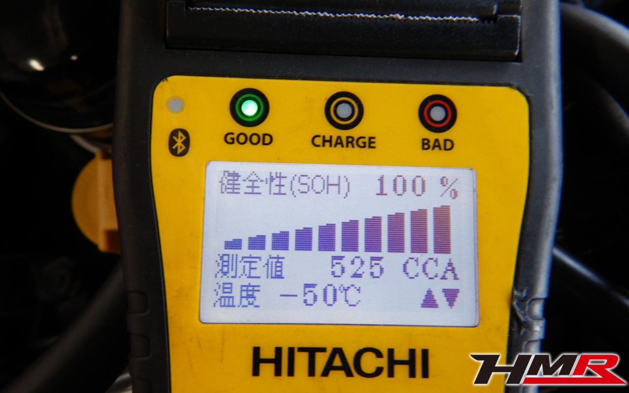 バッテリー、インテークホース、エアクリーナー、補機ベルト、プラグ、ブレーキ・クラッチマスターシリンダー、各部ゴム類の劣化、パッキン類・シール類からのオイル滲み・漏れ、ラジエターの劣化、冷却水漏れ、その他異音などをチェックしました。