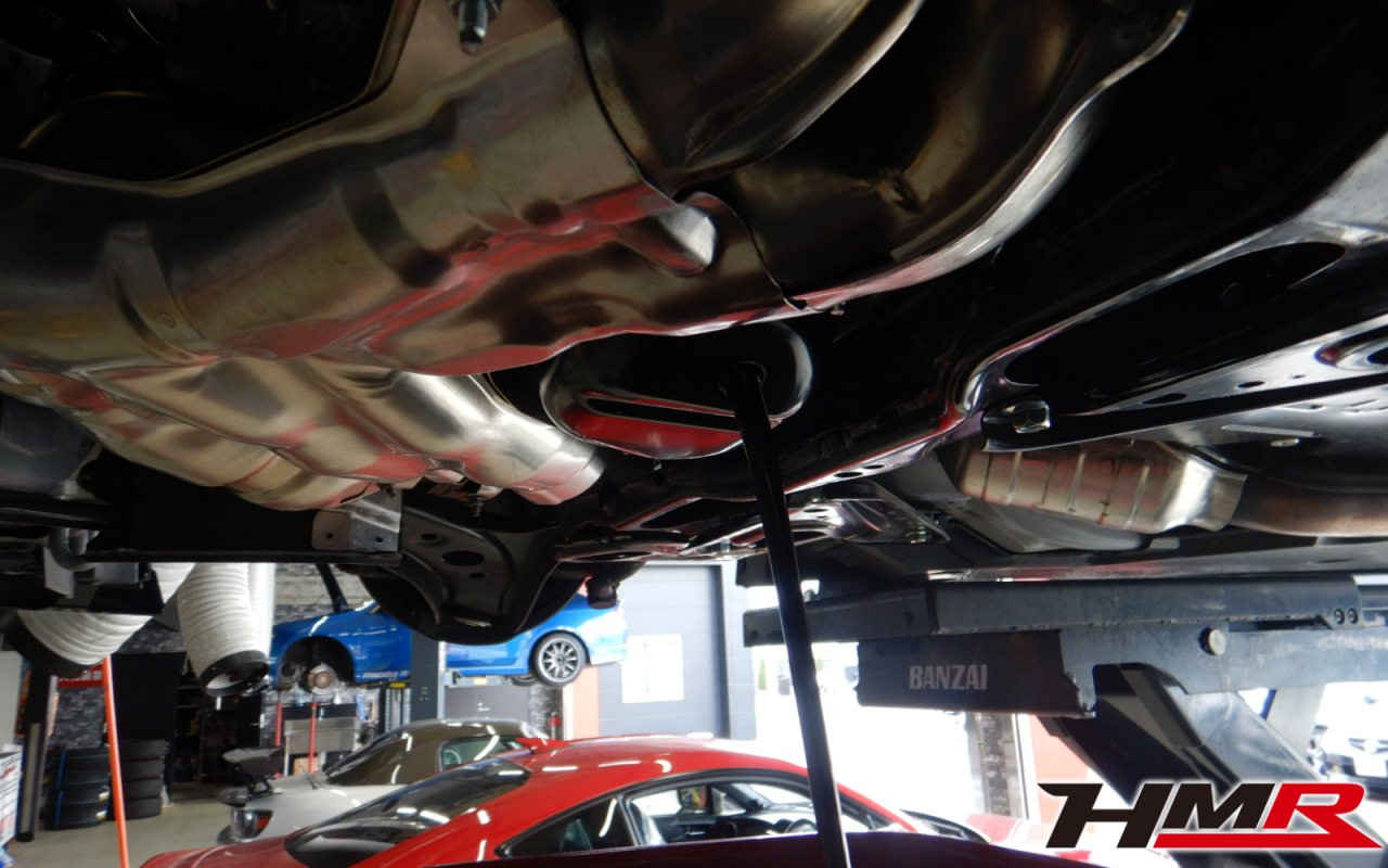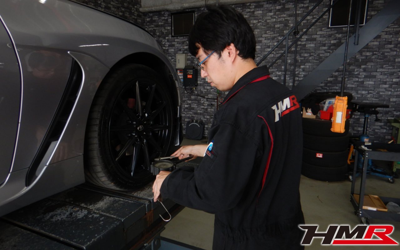 HMR(エイチエムアール)の栗原です。今回はGRスポーツマフラー フロントリップ装備のGR86(ZN8)の納車前点検整備を行いました。担当メカニックはホリグチです。