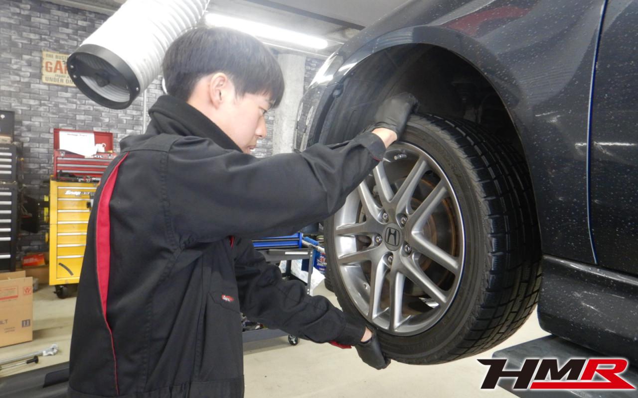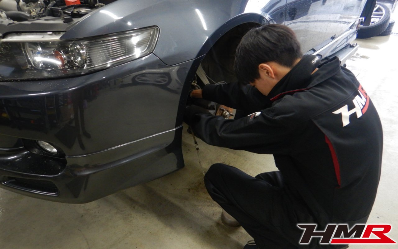 HMR(エイチエムアール)の栗原です。今回は無限トランクスポイラー 社外フルエアロ装備のアコードユーロR(CL7)の納車前点検整備を行いました。担当メカニックは大川です。