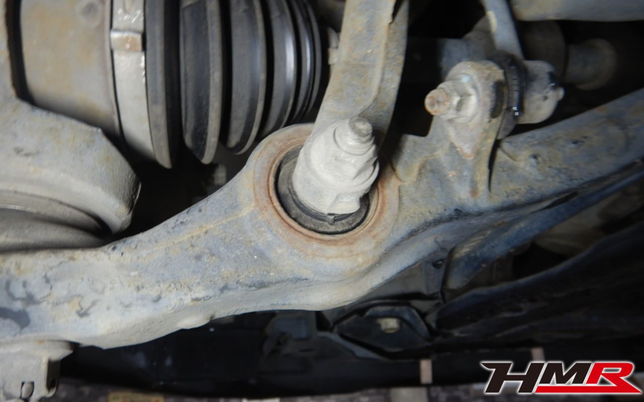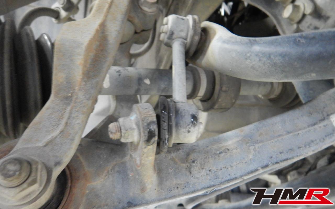 左フロントフロントロアアームブーツのヒビ、右フロントスタビリングブーツの切れ、左フロントスタビリングブーツのヒビ、リアアッパーアーム左右のヒビ、左右フロントロアアームヒビが見つかりました。右フロントスタビリングブーツの切れについては後ほど交換させていただきました。その他の箇所についてはすぐの交換は必要ないのでまたタイミングを見て交換をオススメいたします。