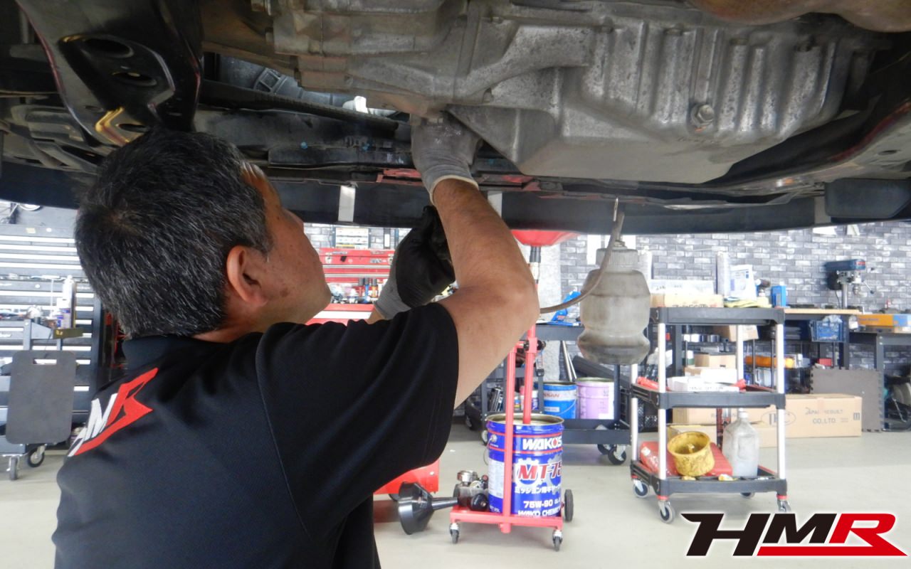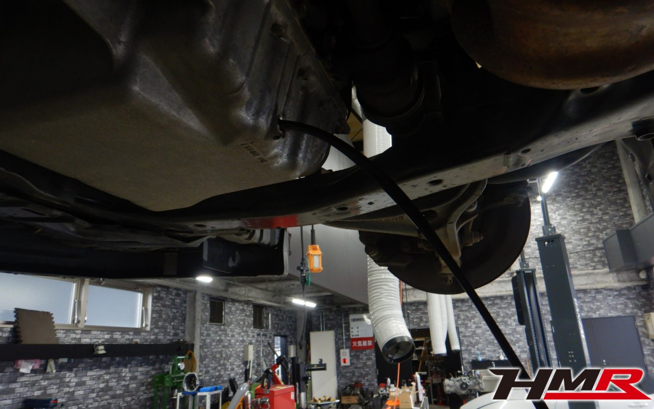 ハブベアリング・ボールジョイント、アーム・リンク類のガタ、ブッシュ・ブーツ類の劣化、エンジン・ミッション・デフからのオイル漏れと各マウント類、タイヤ溝の残量、空気圧の点検しました。