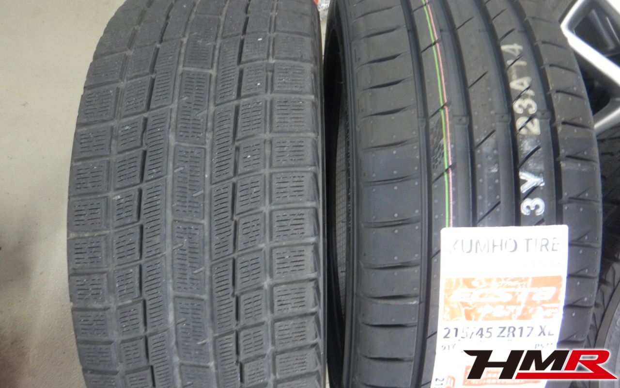 タイヤ溝の前後ともに5mmでしたが、2012年製のスタッドレスタイヤで経年劣化が見られました、また左フロントのエアバルブよりエア漏れも確認できましたので後ほど交換させていただきました。