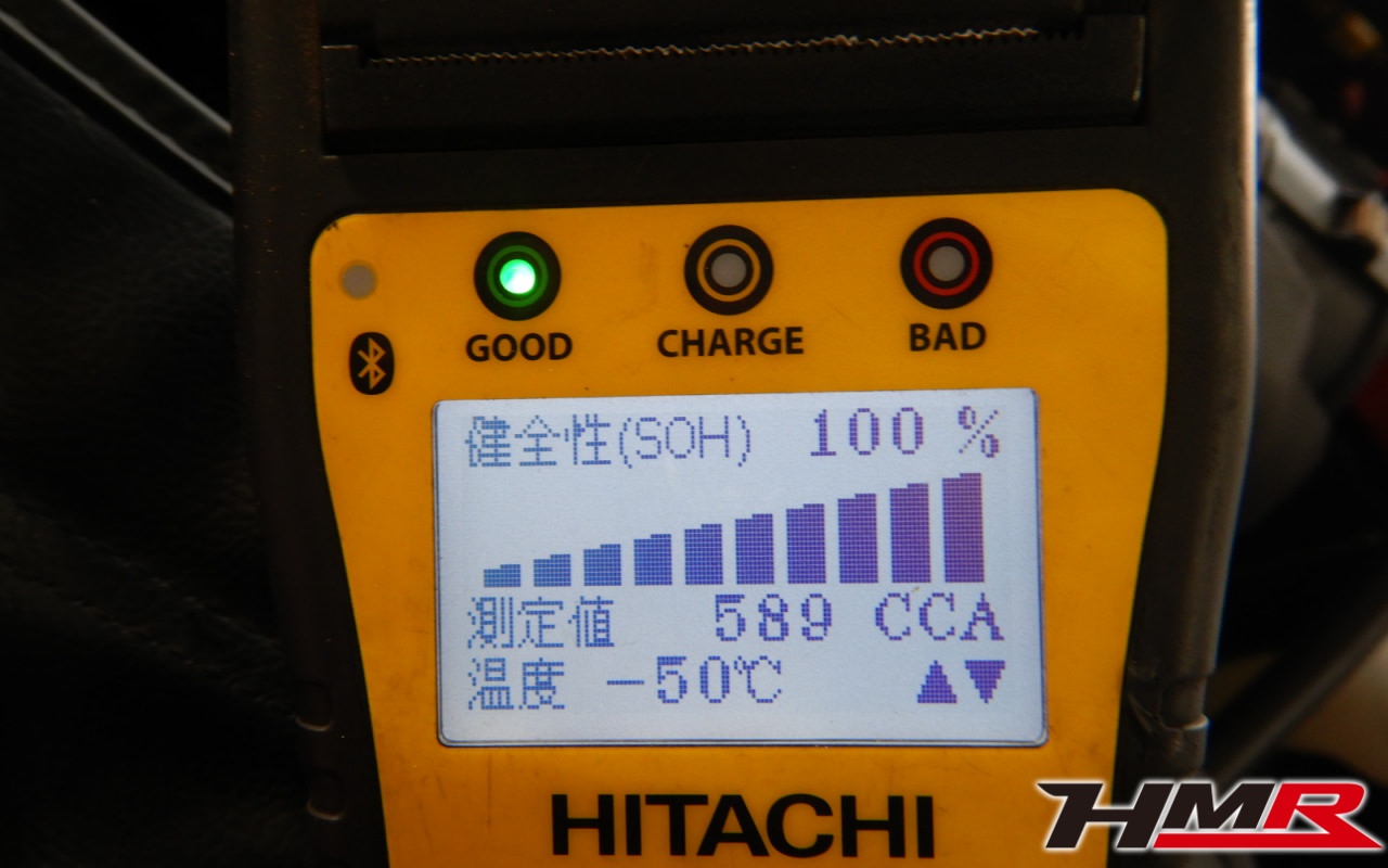 バッテリー、インテークホース、エアクリーナー、補機ベルト、プラグ、ブレーキ・クラッチマスターシリンダー、各部ゴム類の劣化、パッキン類・シール類からのオイル滲み・漏れ、ラジエターの劣化、冷却水漏れ、その他異音などをチェックしました。