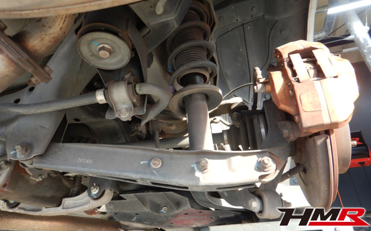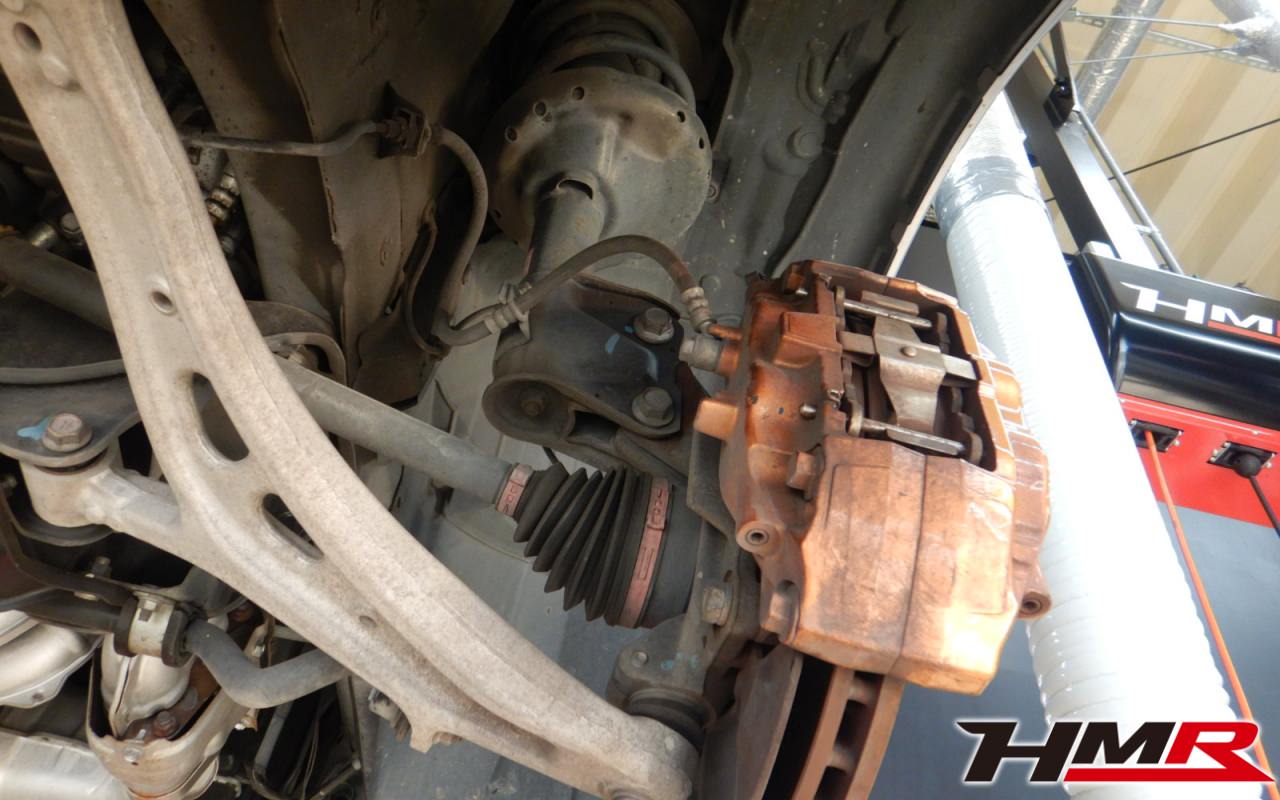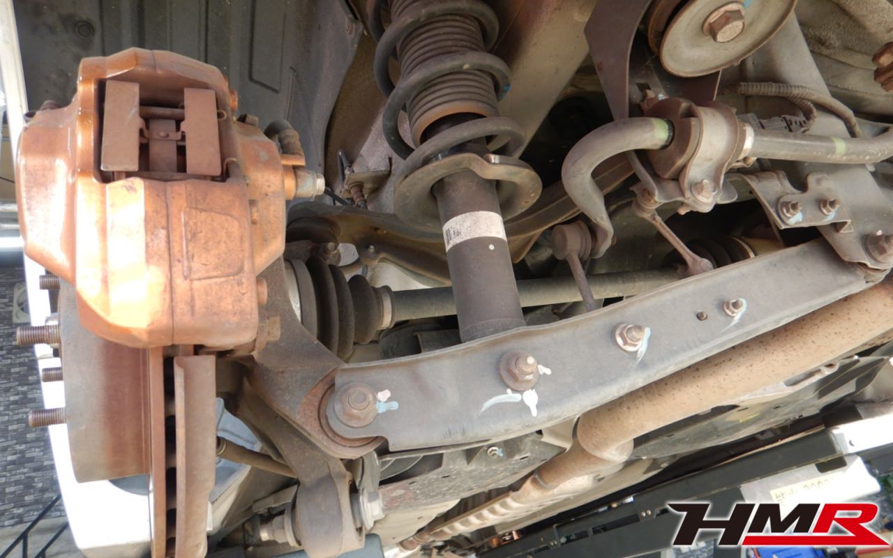 ハブベアリング・ボールジョイント、アーム・リンク類のガタ、ブッシュ・ブーツ類の劣化、エンジン・ミッション・デフからのオイル漏れと各マウント類、タイヤ溝の残量、空気圧の点検しました。