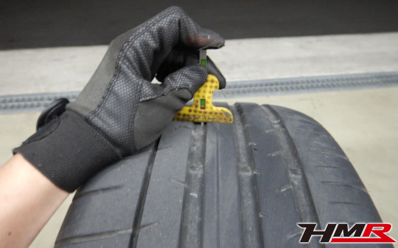 タイヤ溝の残量はフロント5mm、リア3mmでした。