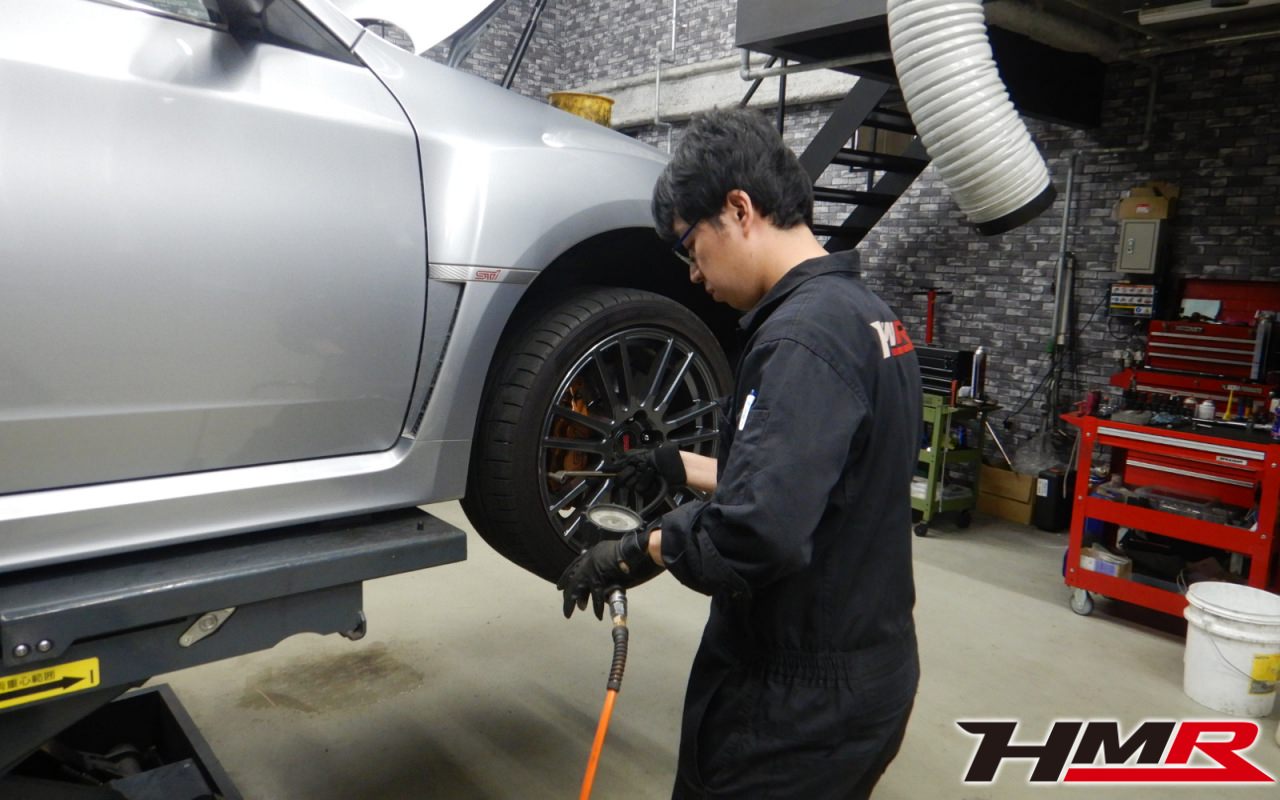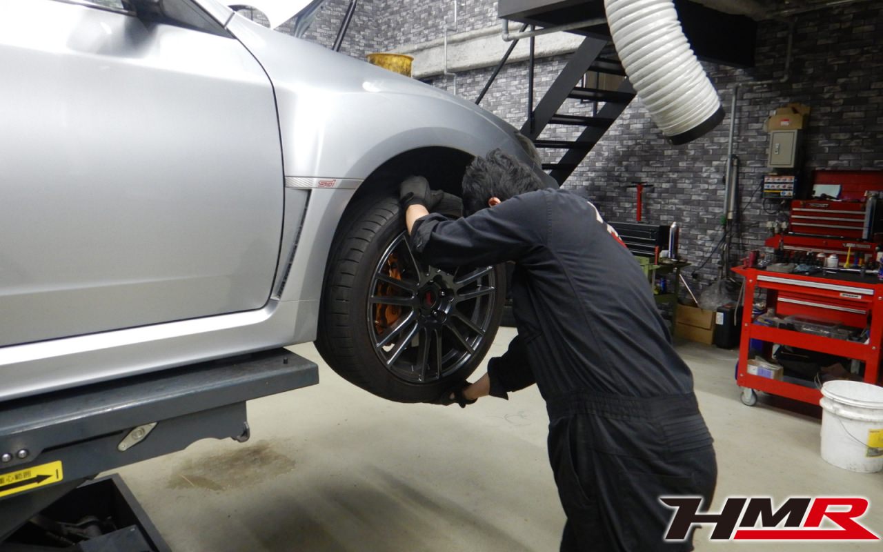 HMR(エイチエムアール)の栗原です。今回は ENKEI製純正18インチ装備のインプレッサWRX STI(GVB)スペックCの納車前点検整備を行いました。担当メカニックはホリグチです。