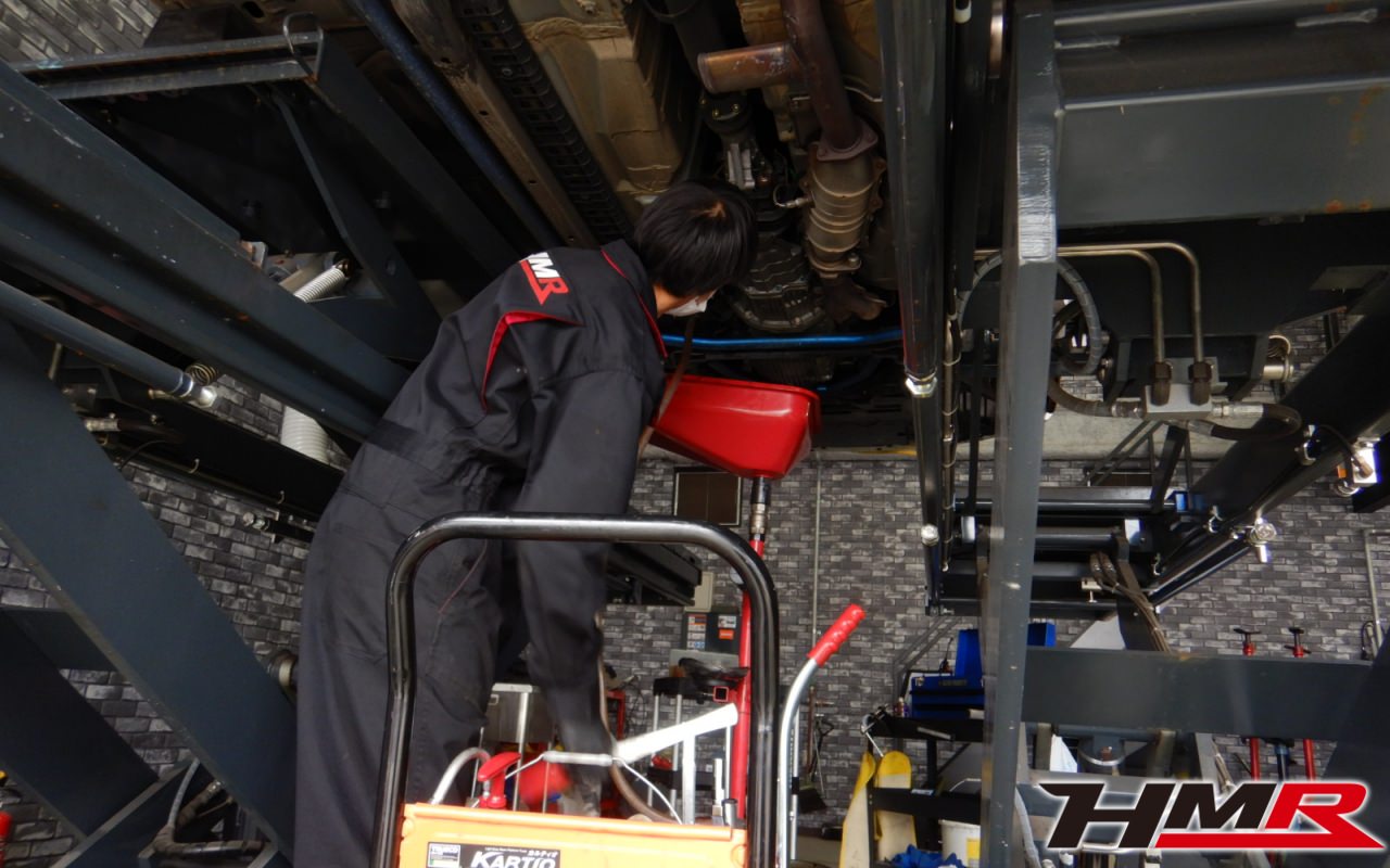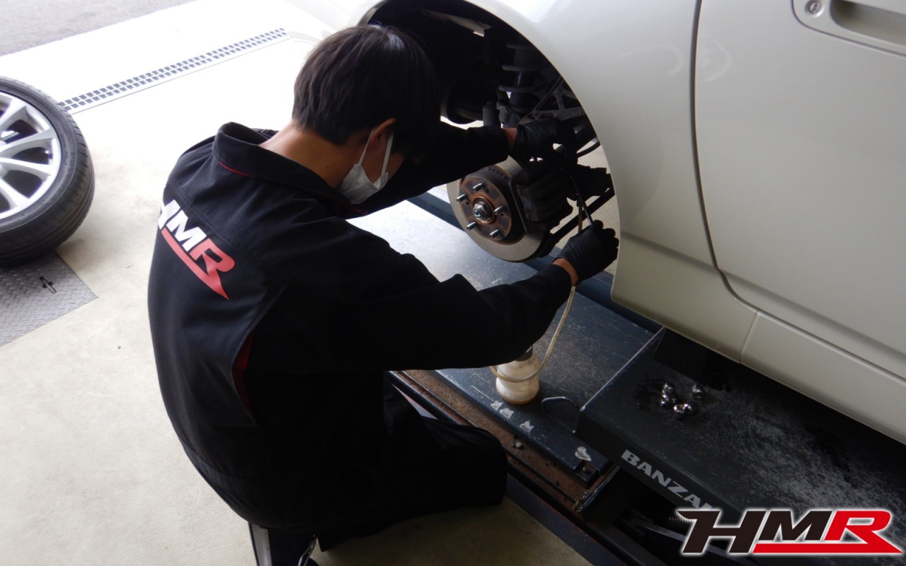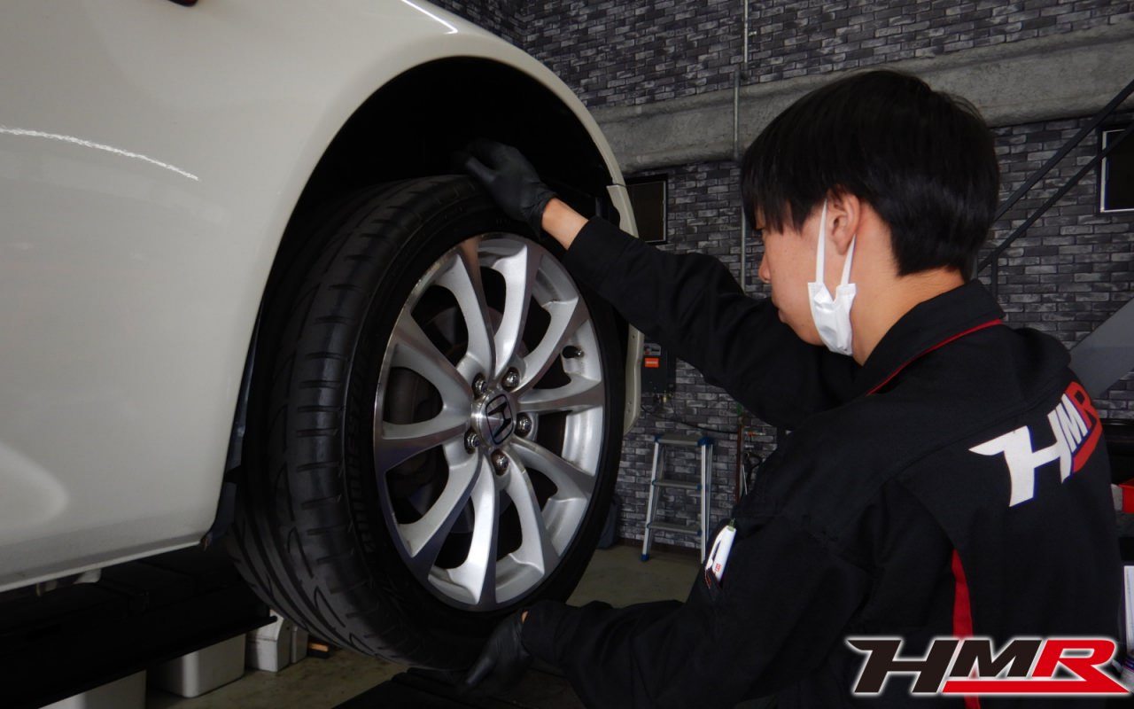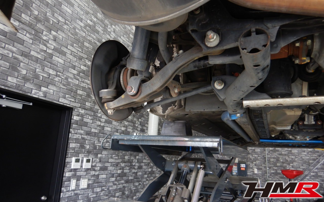 ハブベアリング・ボールジョイント、アーム・リンク類のガタ、ブッシュ・ブーツ類の劣化、エンジン・ミッション・デフからのオイル漏れと各マウント類、タイヤ溝の残量、空気圧の点検しました。