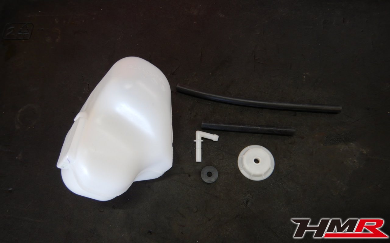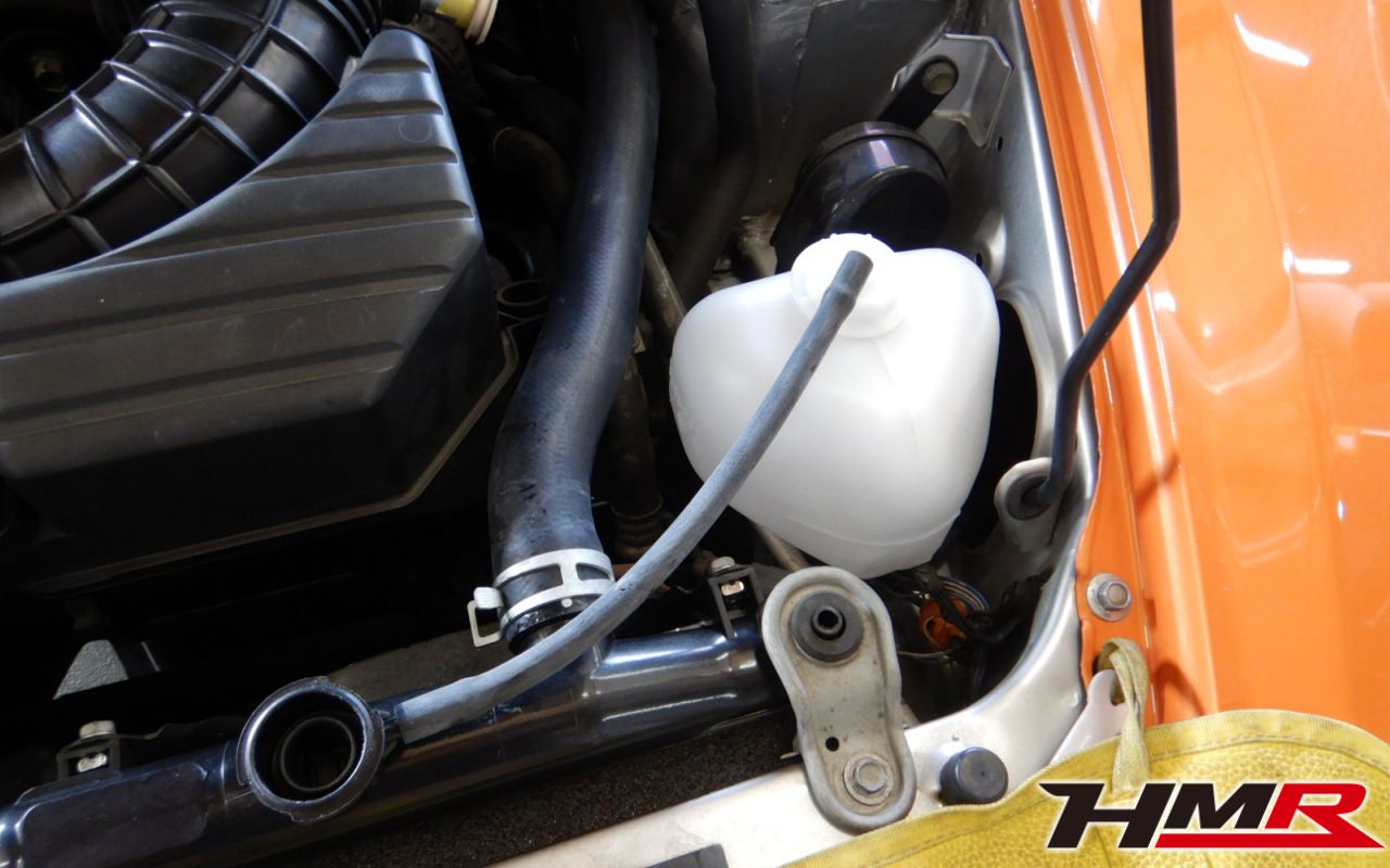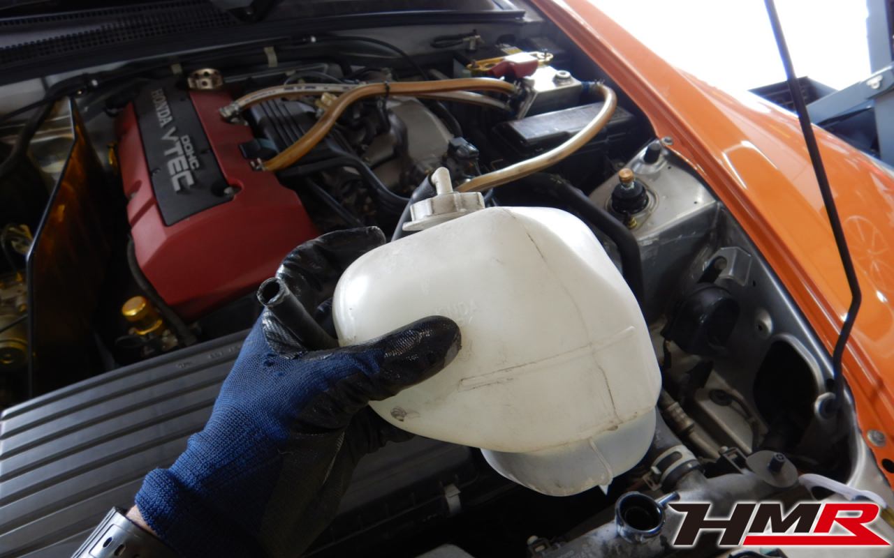 次にラジエターのリザーブタンクを取り外していきます。こちらは後ほど新品に交換していきます。