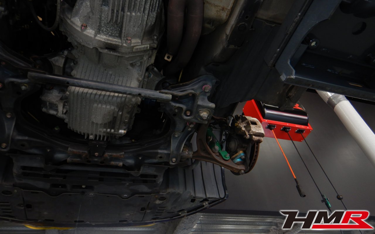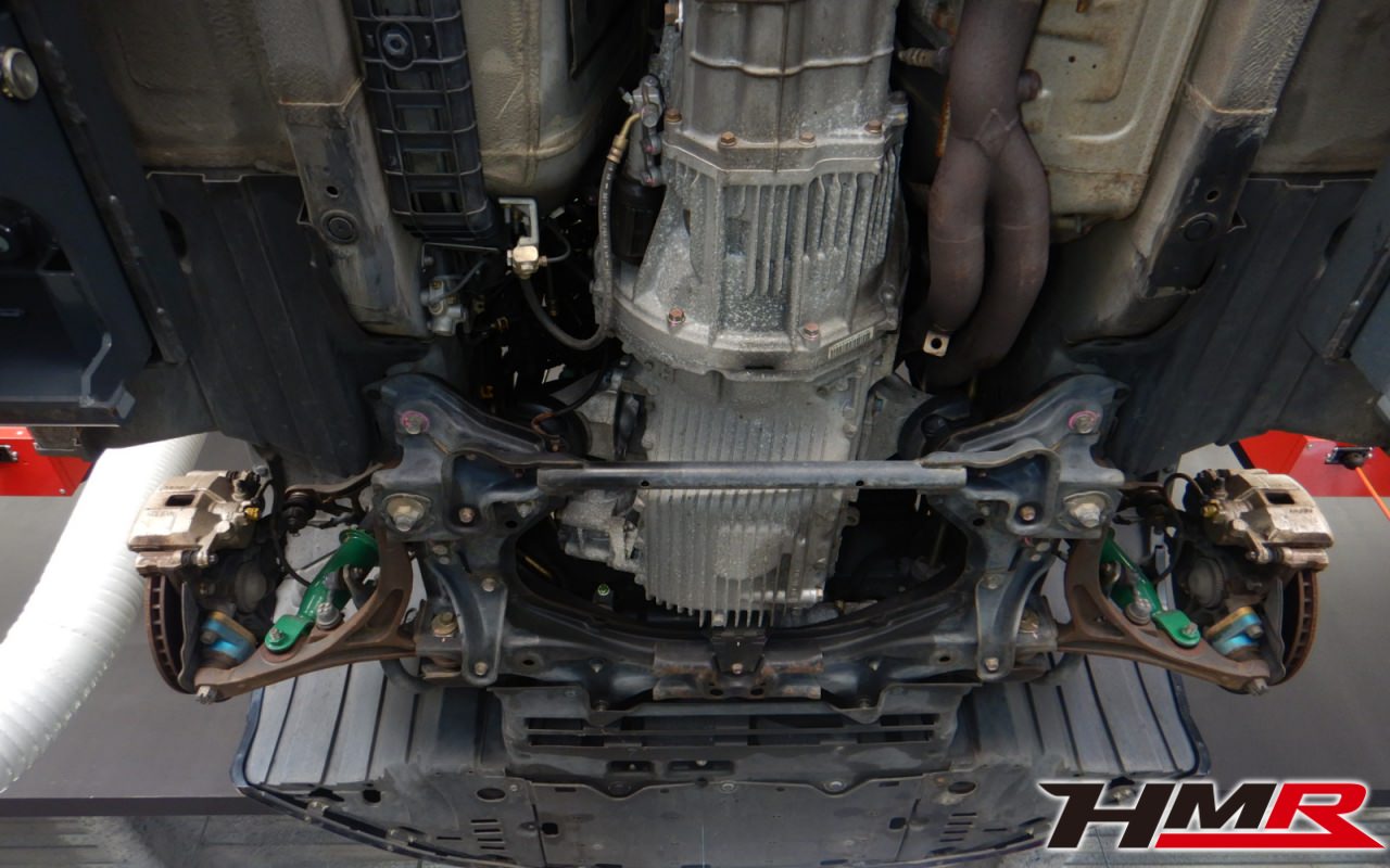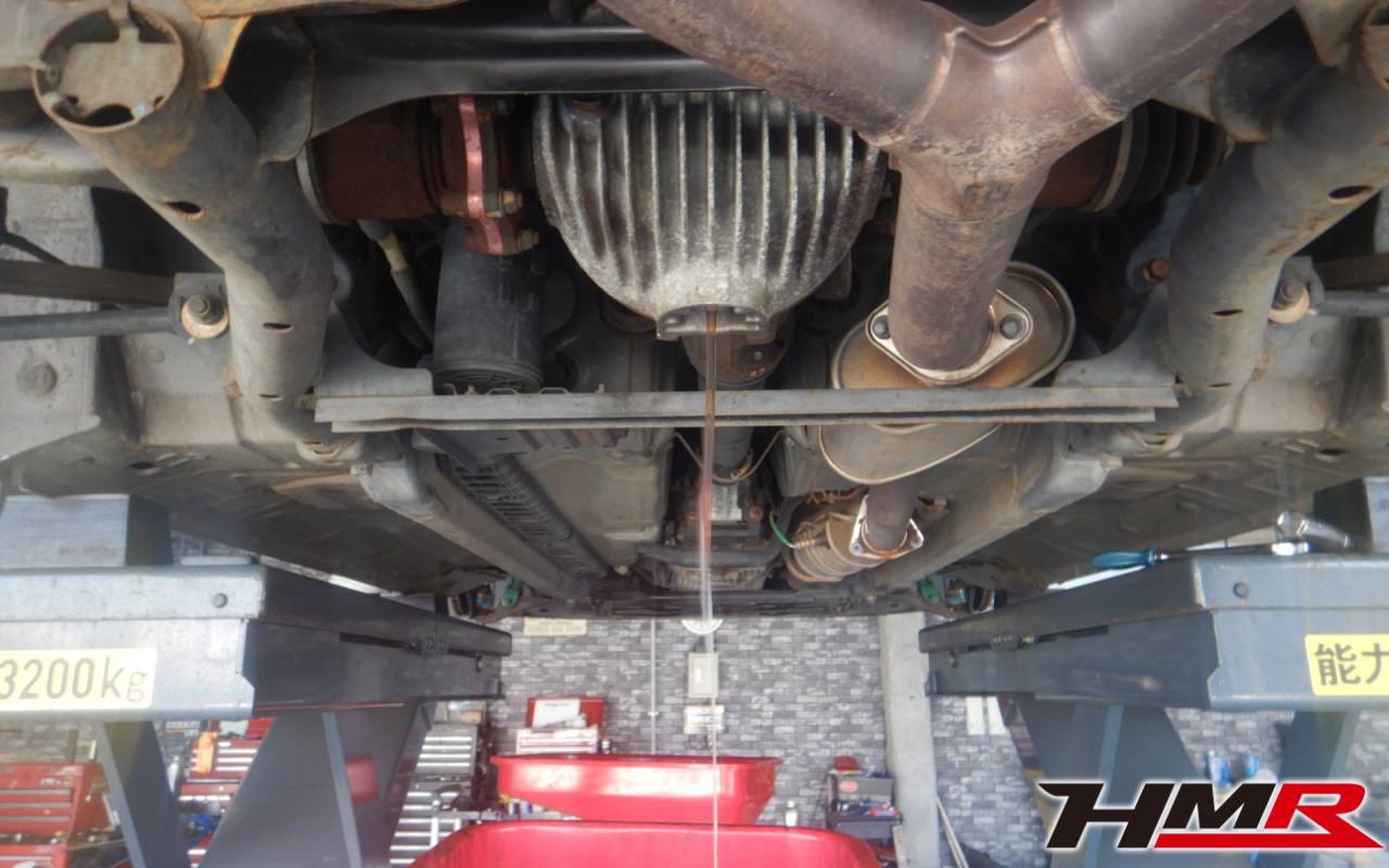 ハブベアリング・ボールジョイント、アーム・リンク類のガタ、ブッシュ・ブーツ類の劣化、エンジン・ミッション・デフからのオイル漏れと各マウント類、タイヤ溝の残量、空気圧の点検しました。