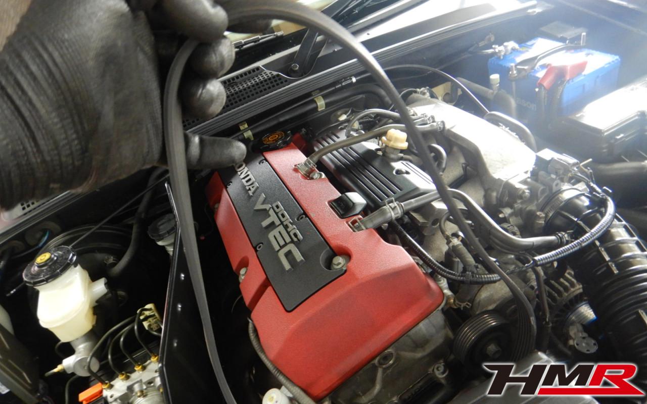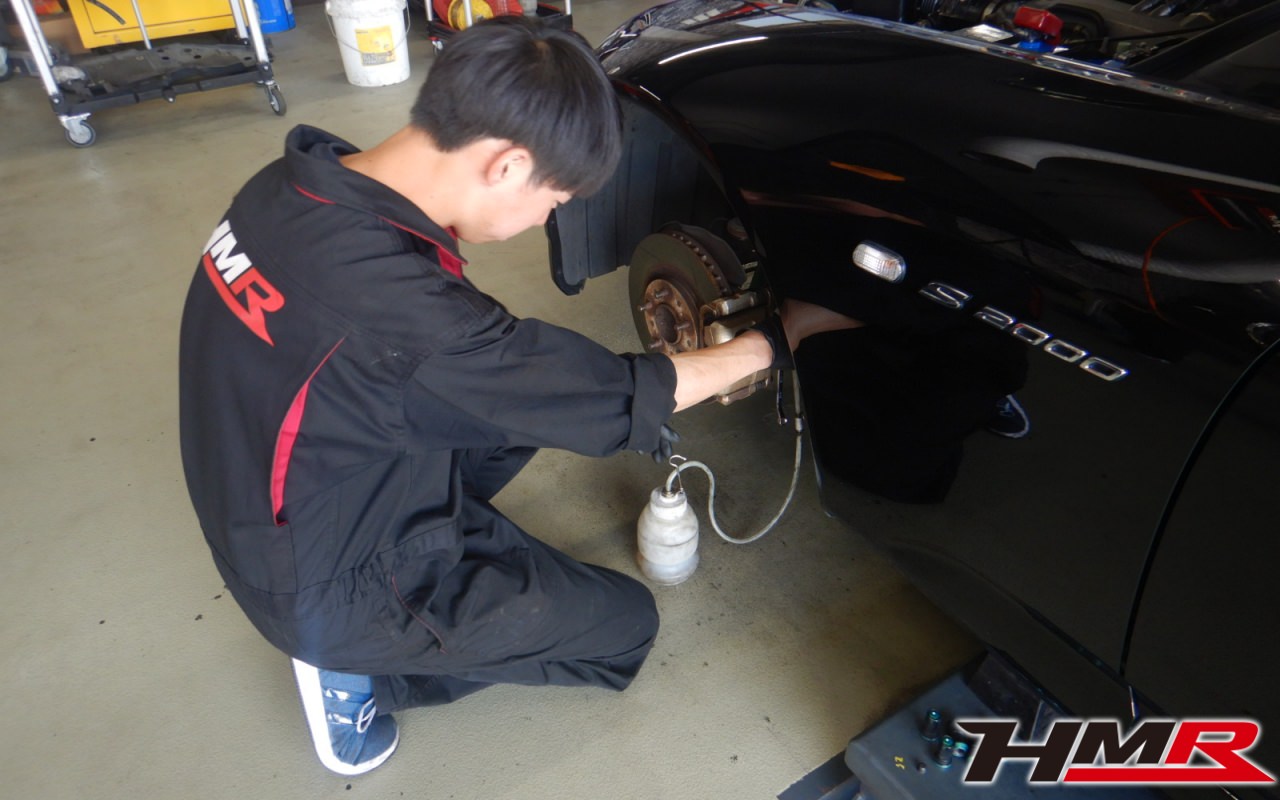 HMR(エイチエムアール)の栗原です。今回はレイズ17インチ 社外車高調&マフラーを装備したS2000(AP1)の納車前点検整備を行いました。担当メカニックは手代木です。