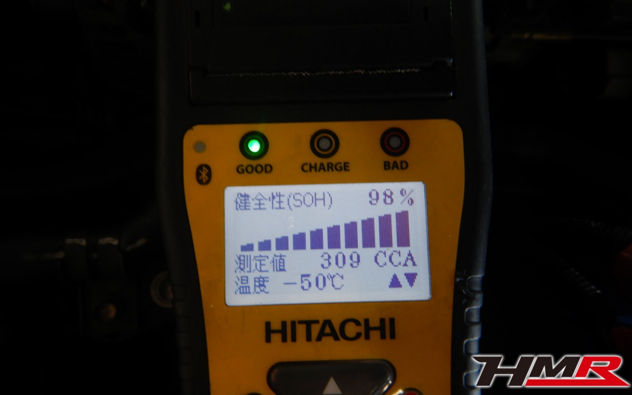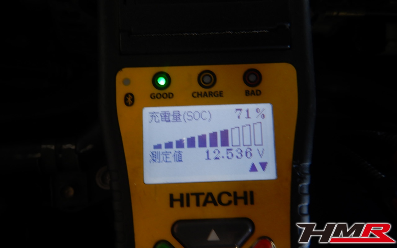 バッテリー、インテークホース、エアクリーナー、補機ベルト、プラグ、ブレーキ・クラッチマスターシリンダー、各部ゴム類の劣化、パッキン類・シール類からのオイル滲み・漏れ、ラジエターの劣化、冷却水漏れ、その他異音などをチェックしました。