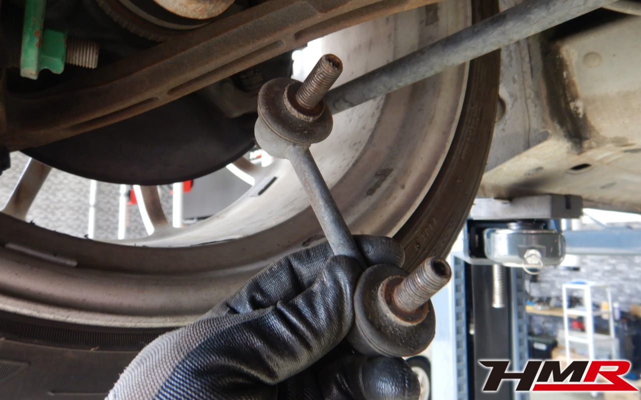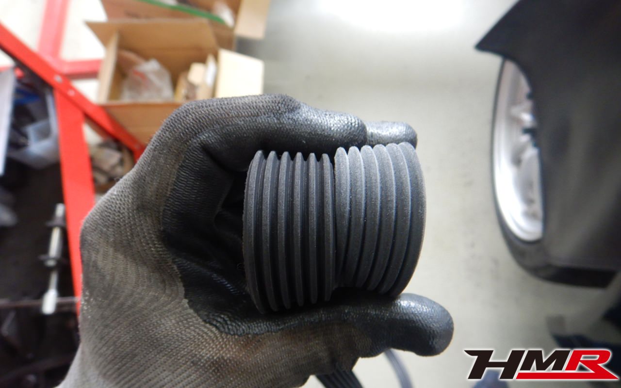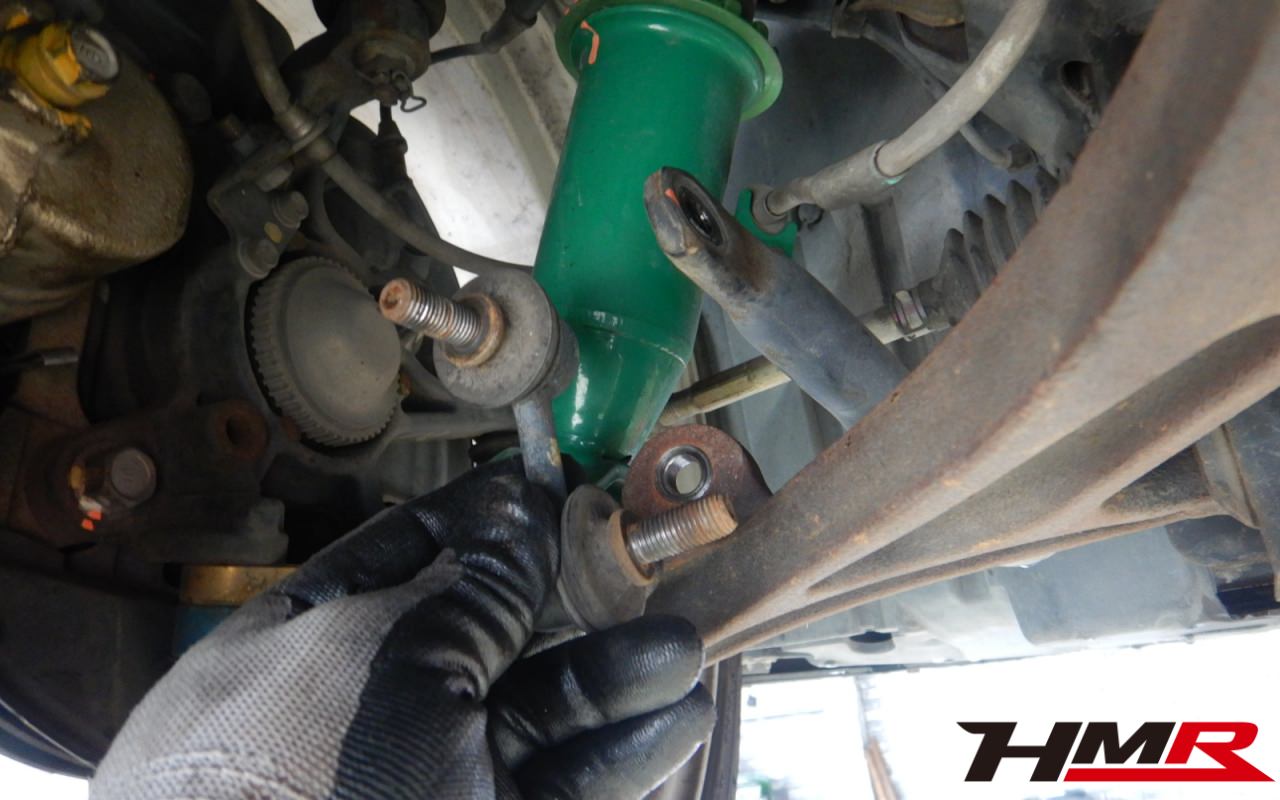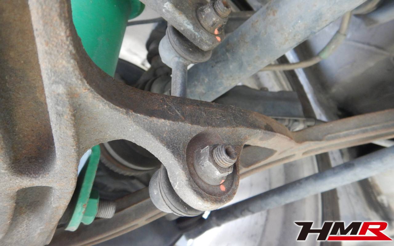 前後のスタビリンクブーツにヒビ割れが見つかりましたので後ほど交換させていただきました。タイヤ溝の残量は、フロント3.7mmでリア1.3mmでしたのでリアタイヤのみ後ほど交換させていただきました。