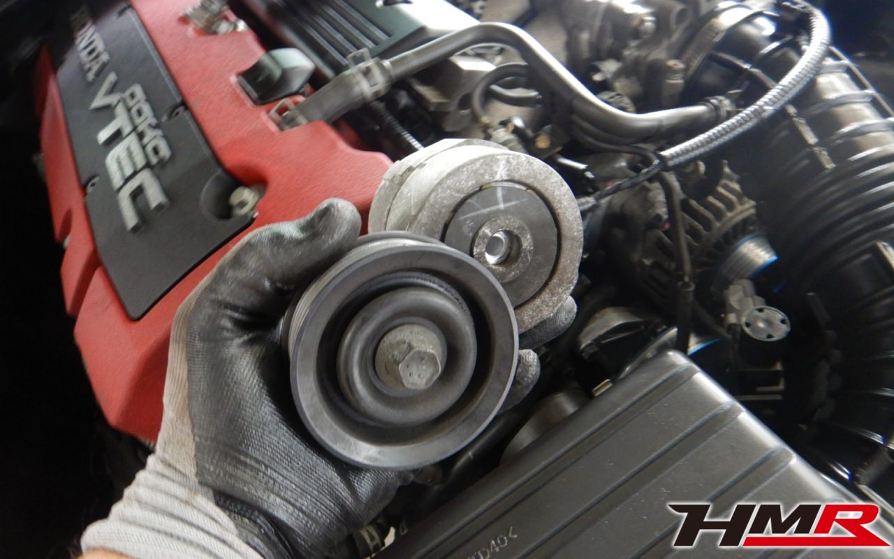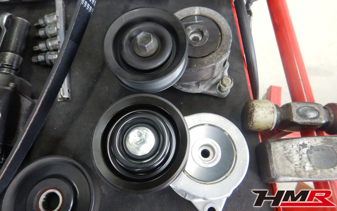 ベルト鳴りが確認できましたので後ほどベルト、オートテンショナーなどを交換させていただきました。