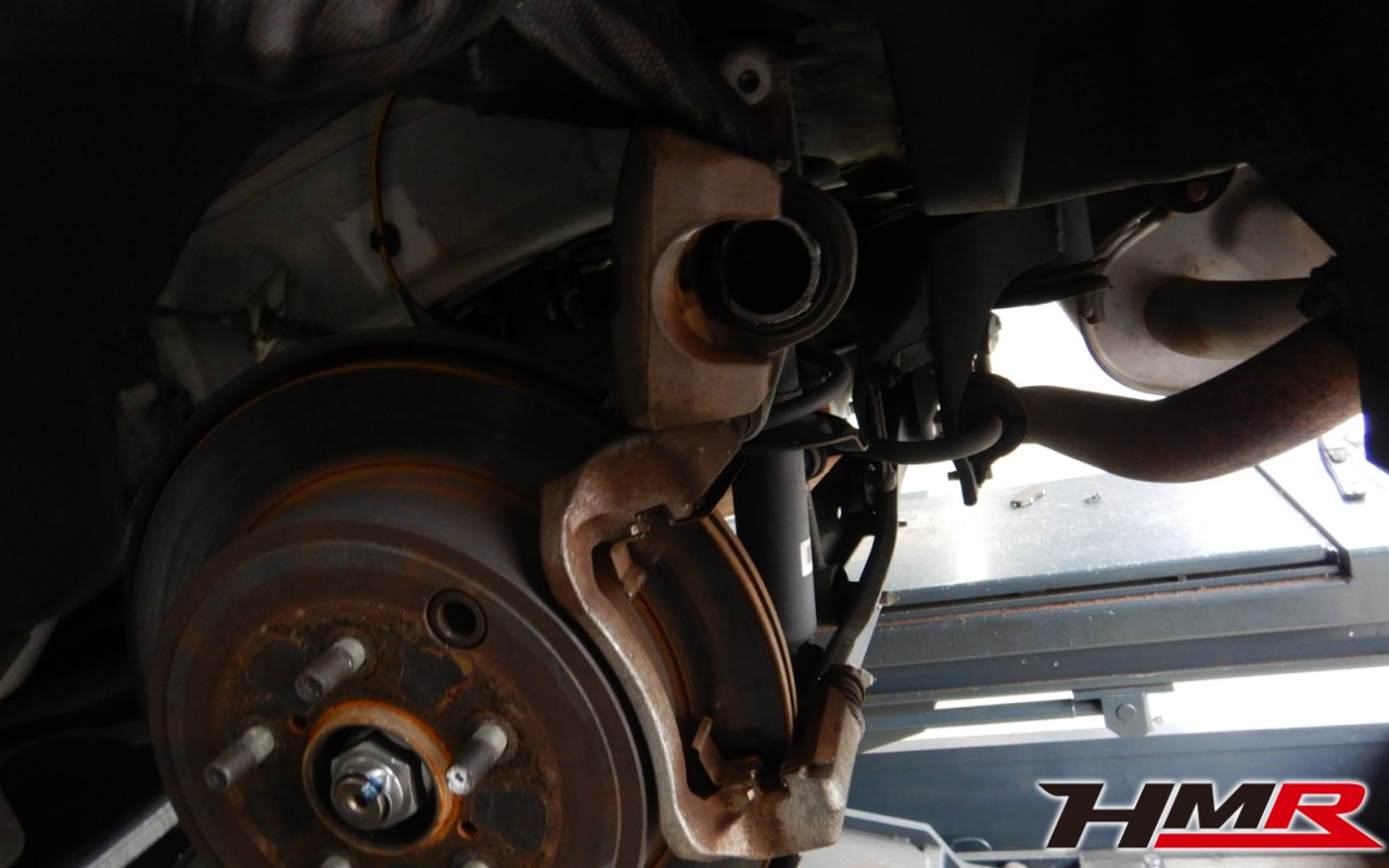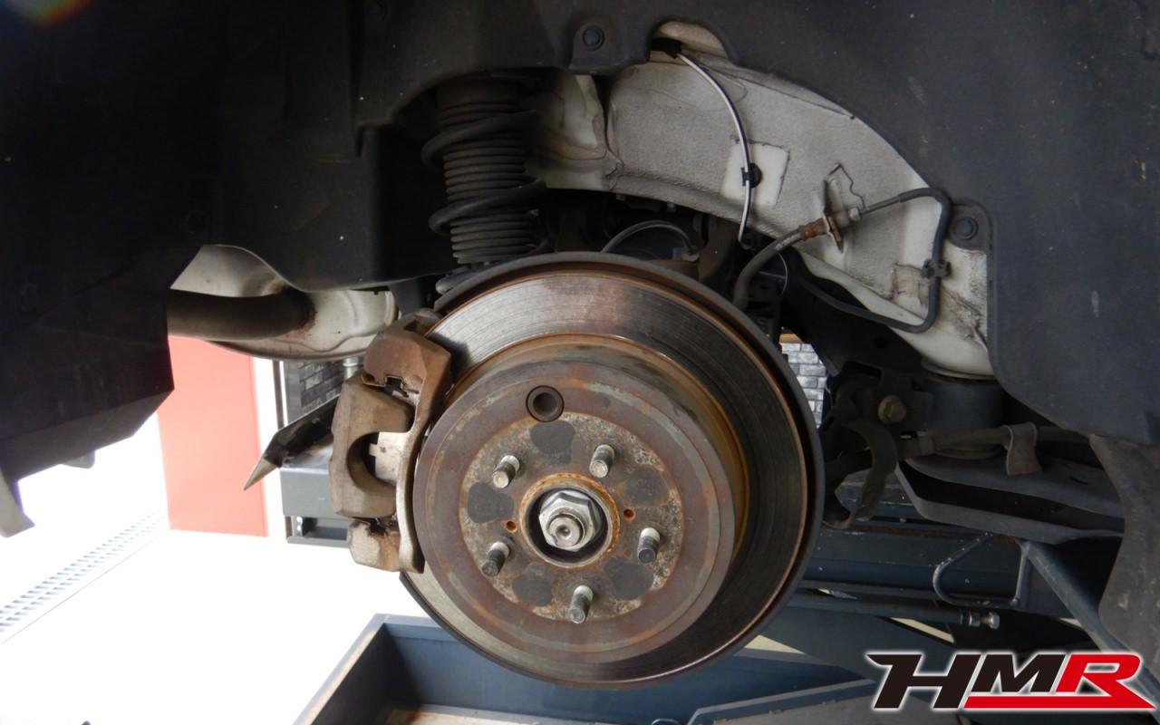 ブレーキキャリパーシール・キャリパーピストン、パッドの残量、ブレーキホースの劣化、ブレーキディスクローターの摩耗をチェックしました。特に問題ありませんでした。ブレーキパッドの残量は、フロント8.5mm、左リア7.5mm、右リア4mmでした。