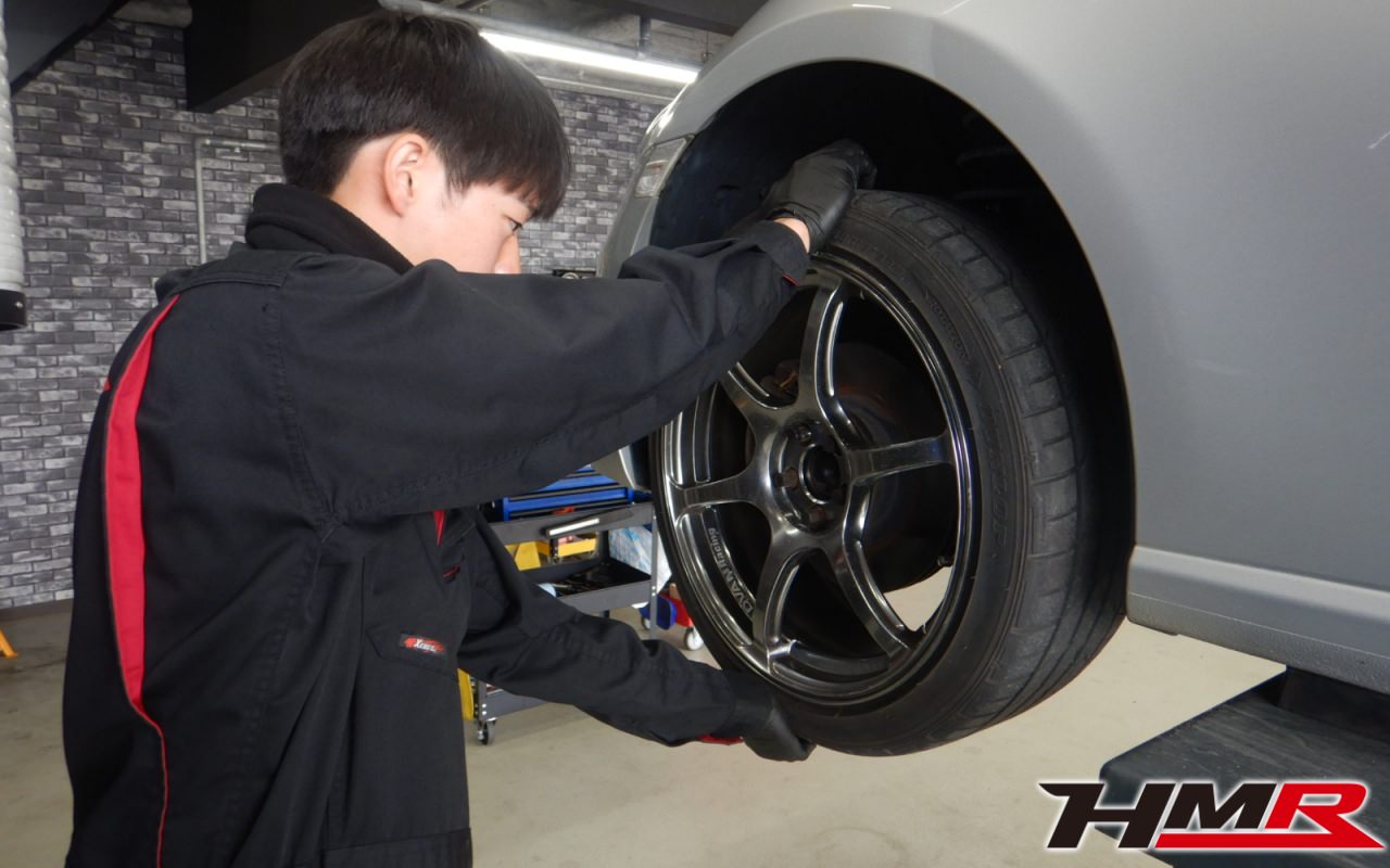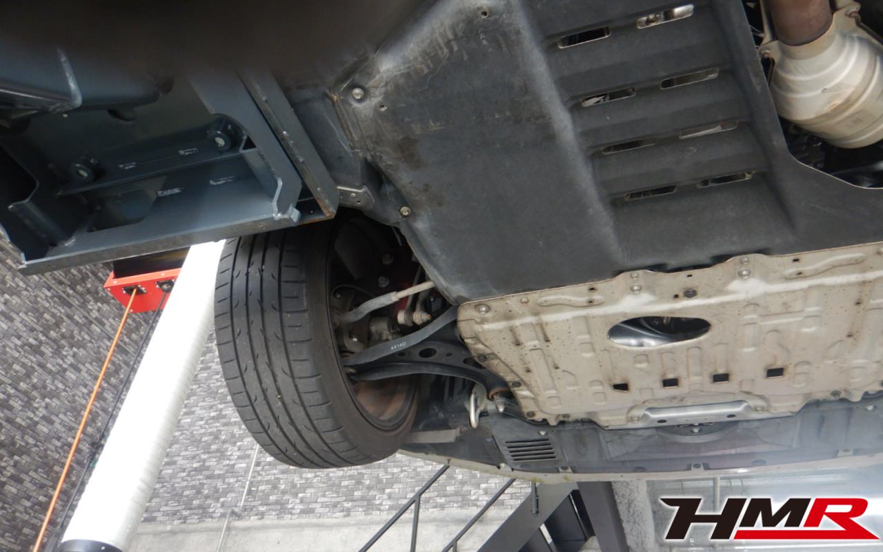 ハブベアリング・ボールジョイント、アーム・リンク類のガタ、ブッシュ・ブーツ類の劣化、エンジン・ミッション・デフからのオイル漏れと各マウント類、タイヤ溝の残量、空気圧の点検しました。特に問題ありませんでした。