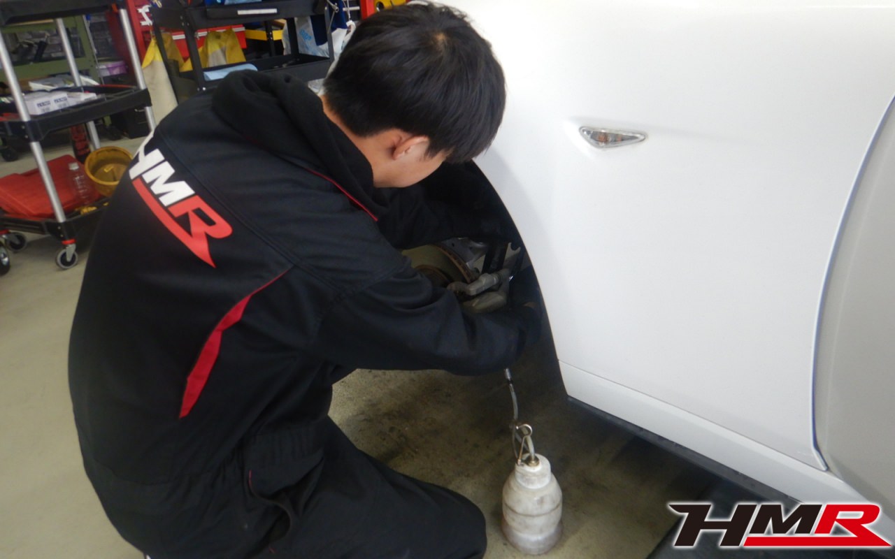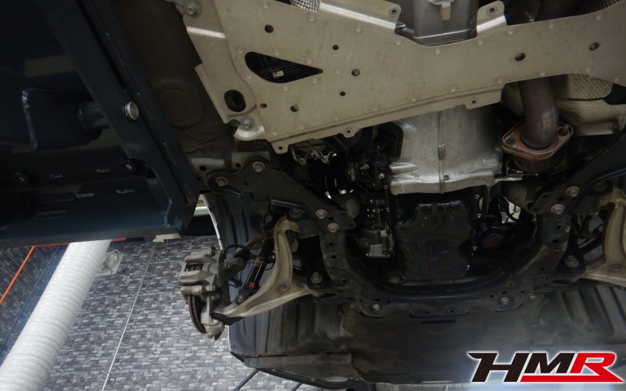 ハブベアリング・ボールジョイント、アーム・リンク類のガタ、ブッシュ・ブーツ類の劣化、エンジン・ミッション・デフからのオイル漏れと各マウント類、タイヤ溝の残量、空気圧の点検しました。特に問題ありませんでした。