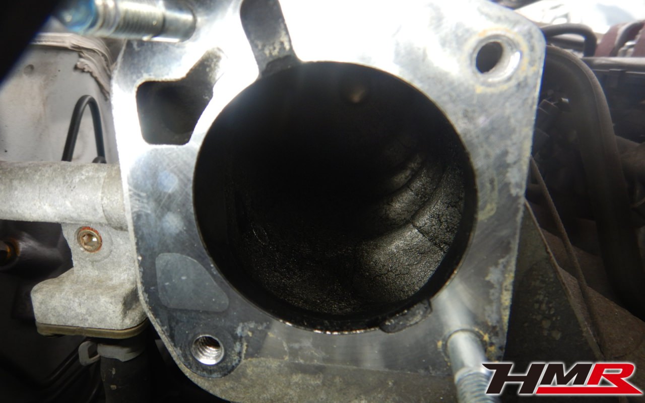 スロットル内部は、煤などで汚れが溜まっています。汚れがより溜まっていくとエンジン不調に繋がっていくのでキレイにしていきます。
