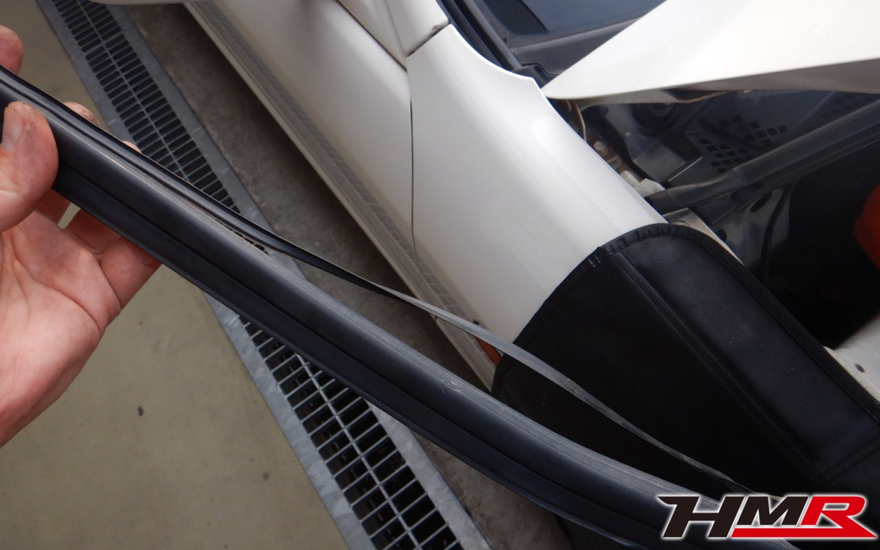 20年も年数が経過したクルマで悩まされるのがボディのモール類。直射日光や紫外線で白っぽくなってきたりします。それだけならいいんですが、更に劣化が進むとボロボロと千切れたりしてきて、そこから雨漏りしたりクルマ全体のコンディションに悪影響を与えてしまいます。