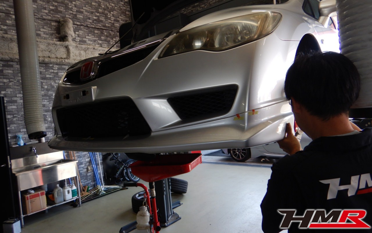 HMR(エイチエムアール)の栗原です。今回は6月21日(水)に筑波サーキット1000にて開催予定のHMR走行会に参加されるシビックタイプR(FD2)の事前メンテナンスを承りましたので作業レポートになります。