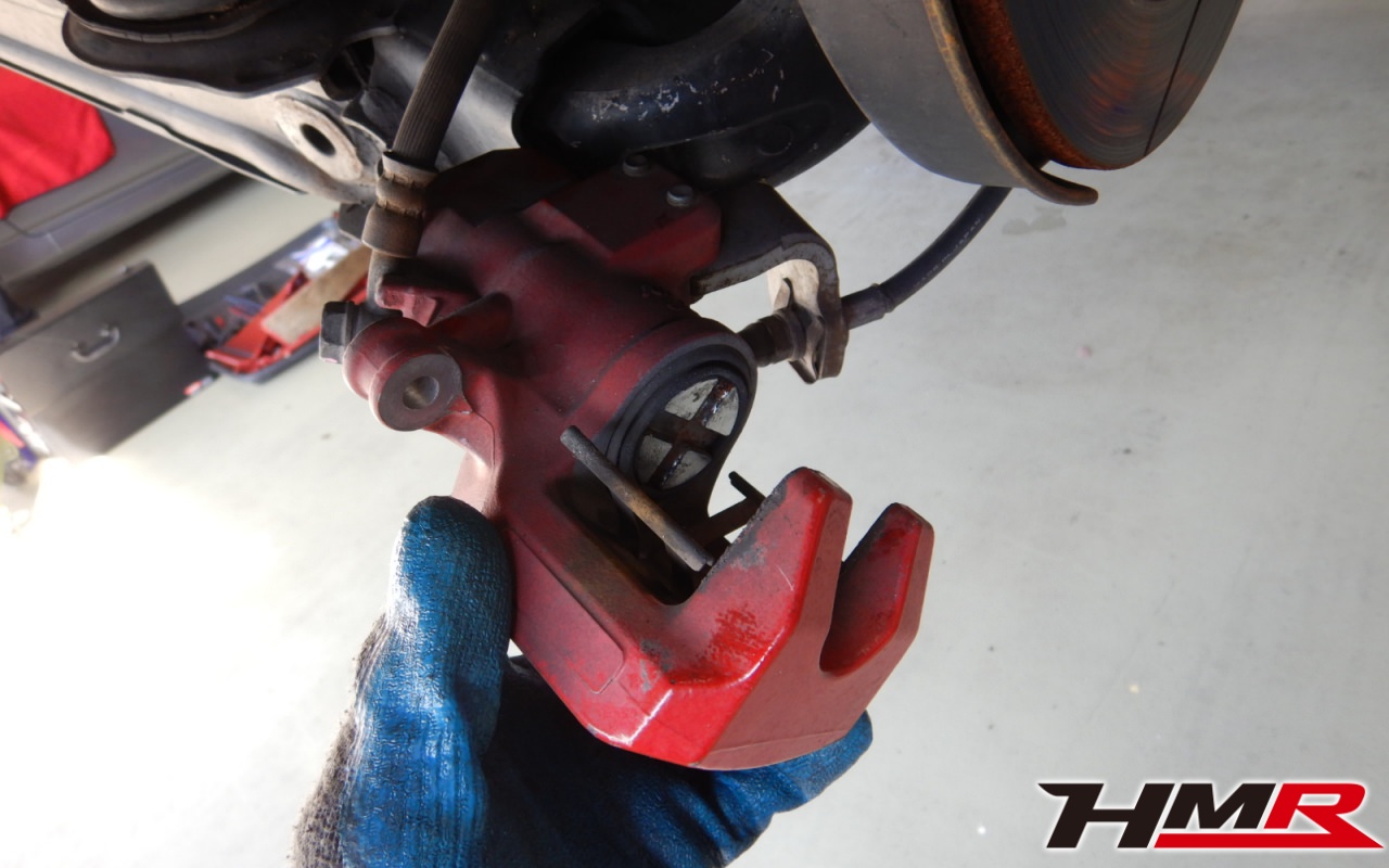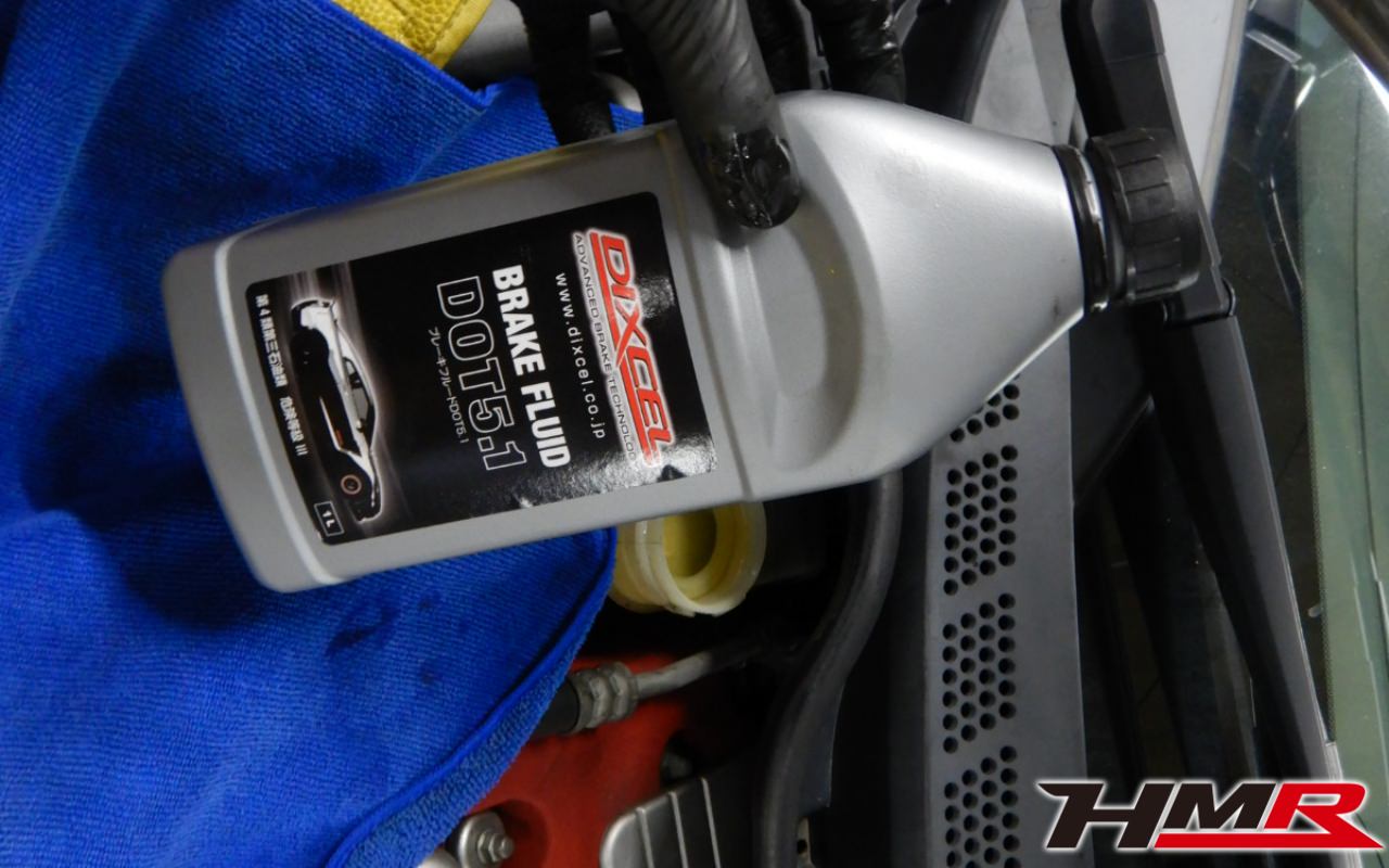 まずブレーキ回りのメンテナンスをしていきます。事前にお客様よりリフレッシュのご要望をいただきましたのでブレーキパッドを交換していきます。各ブレーキパッドを取り外して状態を確認し  ブレーキキャリパーのピストンも確認していきます。  交換するのはDIXECLのストリートスポーツ Stypeになります。  ブレーキフルードもスポーツ走行に対応したDIXECL製を入れていきます。