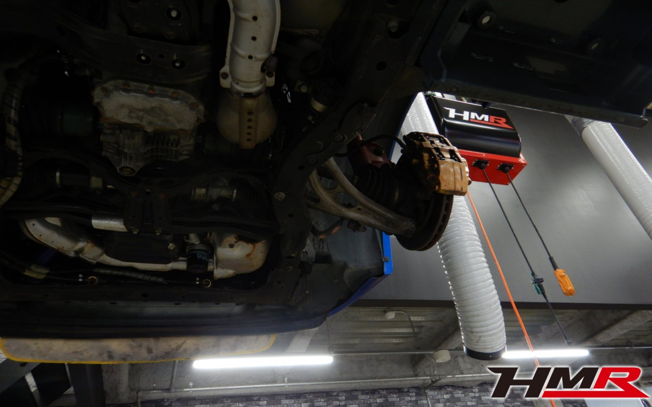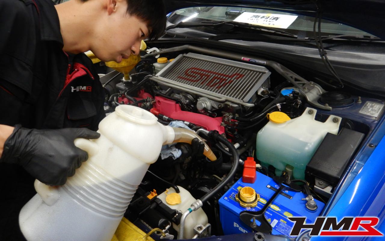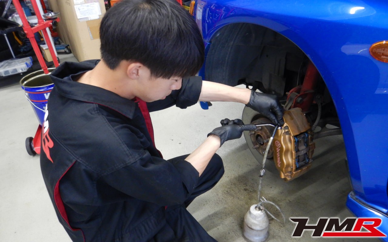 HMR(エイチエムアール)の栗原です。今回はフジツボマフラー HKS EVC ブレンボ装備のインプレッサWRX STI(GDB)の納車前点検整備を行いました。担当メカニックは手代木です。