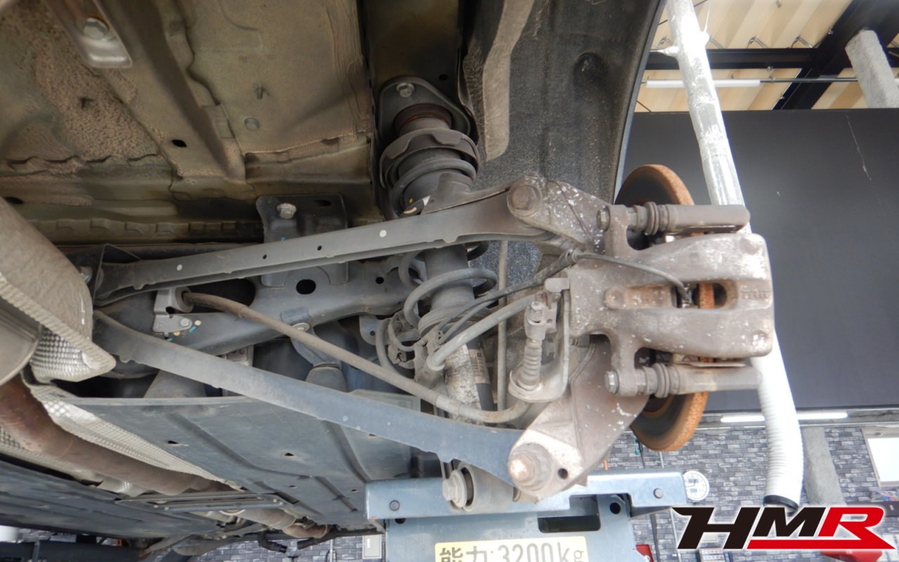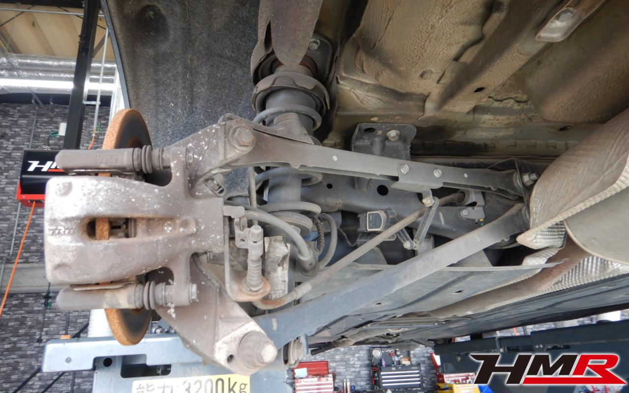 ハブベアリング・ボールジョイント、アーム・リンク類のガタ、ブッシュ・ブーツ類の劣化、エンジン・ミッション・デフからのオイル漏れと各マウント類、タイヤ溝の残量、空気圧の点検しました。