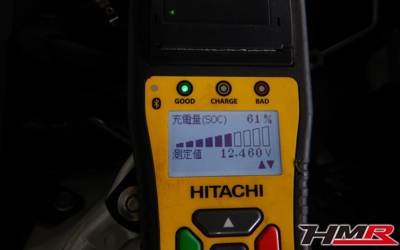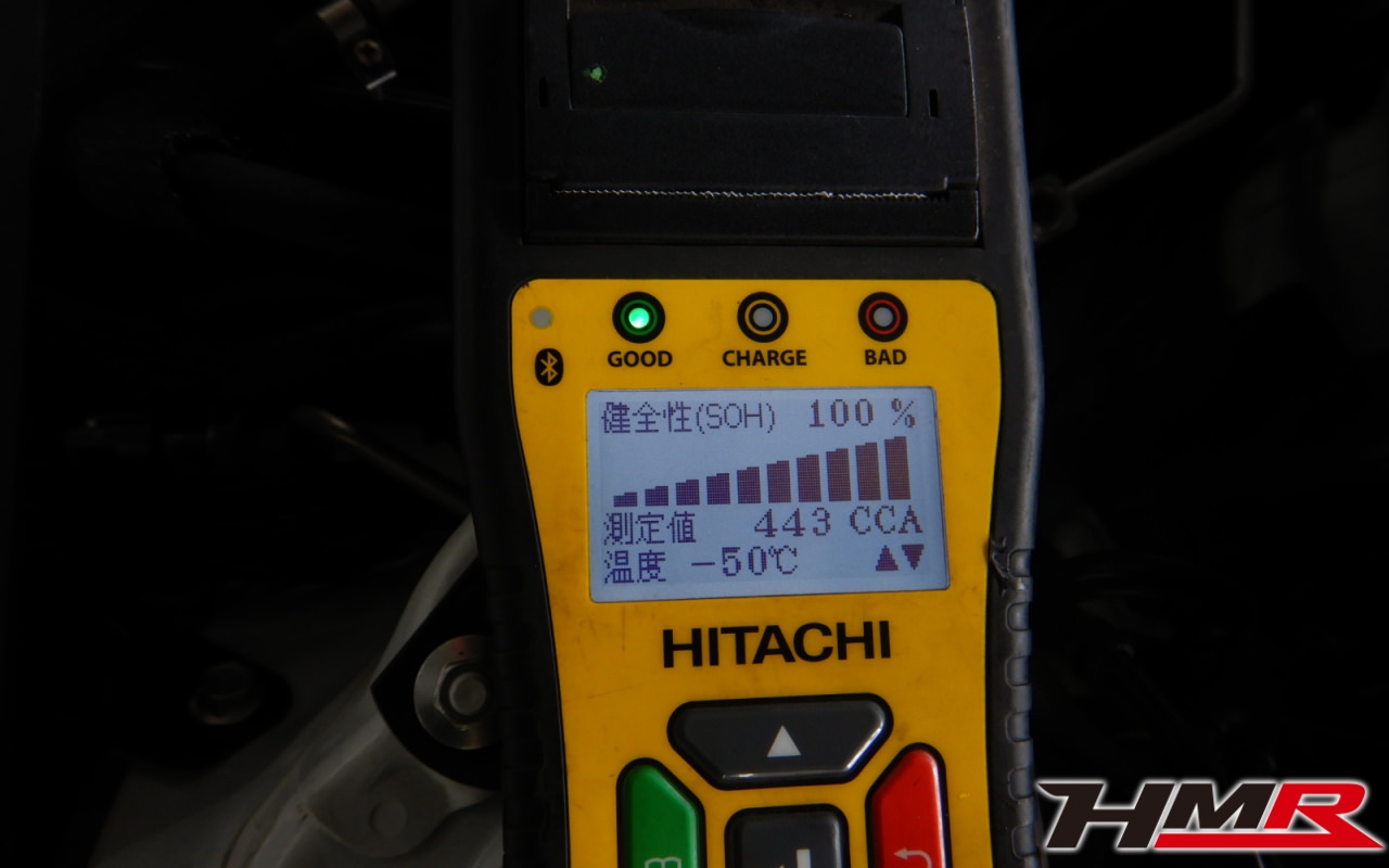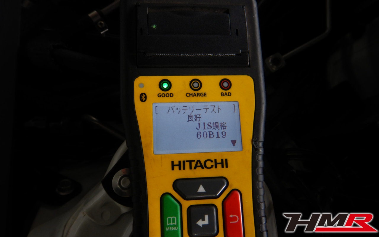 バッテリー、インテークホース、エアクリーナー、補機ベルト、プラグ、ブレーキ・クラッチマスターシリンダー、各部ゴム類の劣化、パッキン類・シール類からのオイル滲み・漏れ、ラジエターの劣化、冷却水漏れ、その他異音などをチェックしました。特に問題ありませんでした。