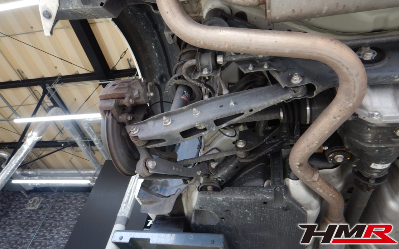 ハブベアリング・ボールジョイント、アーム・リンク類のガタ、ブッシュ・ブーツ類の劣化、エンジン・ミッション・デフからのオイル漏れと各マウント類、タイヤ溝の残量、空気圧の点検しました。