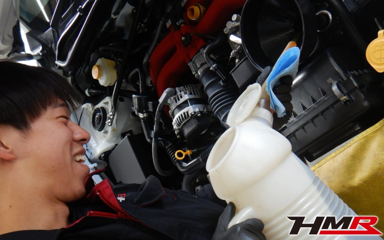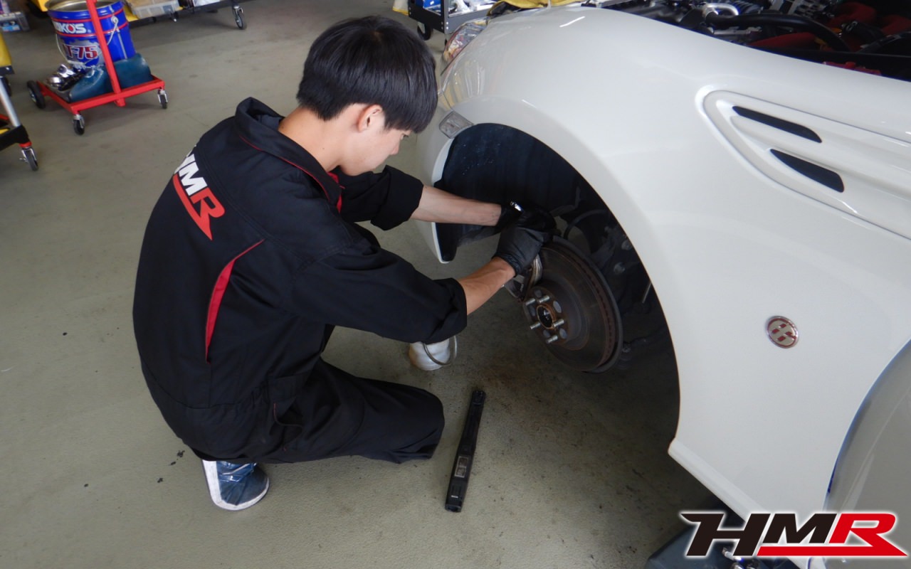 HMR(エイチエムアール)の栗原です。今回は6MT SACHSダンパー 純正SDナビ装備の86(ZN6) 2.0GTの納車前点検整備を行いました。担当メカニックは手代木です。