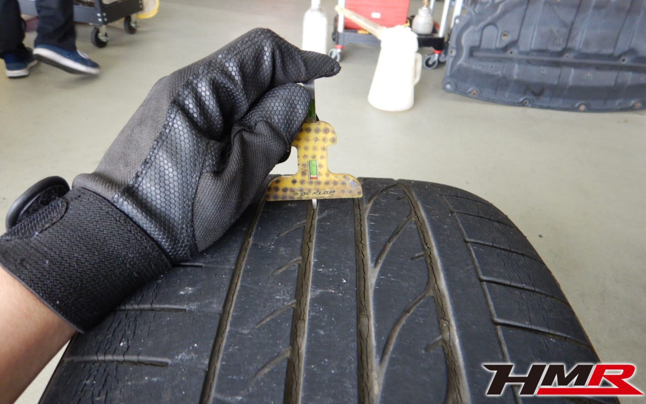 タイヤ溝の残量は、フロント2.6mm・リア1.8mmと溝があまり残っていなかったので後ほど交換させていただきました。