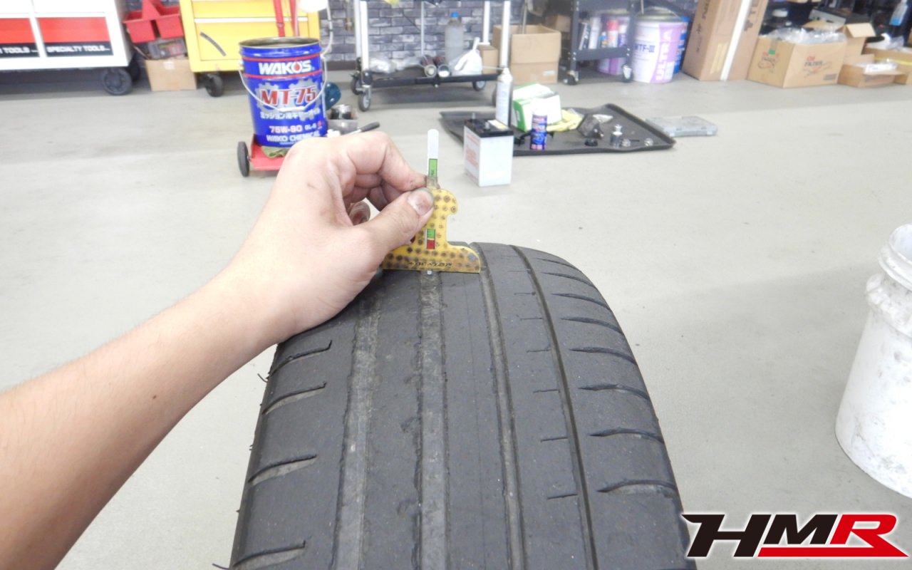 タイヤ溝の残量は、フロント1.6mm、リア4mmとフロントがかなり消耗していますのでお早めの交換をオススメさせていただきました。