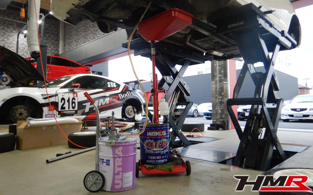 ハブベアリング・ボールジョイント、アーム・リンク類のガタ、ブッシュ・ブーツ類の劣化、エンジン・ミッション・デフからのオイル漏れと各マウント類、タイヤ溝の残量、空気圧の点検しました。
