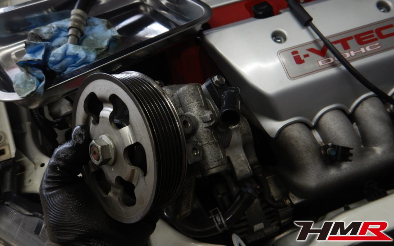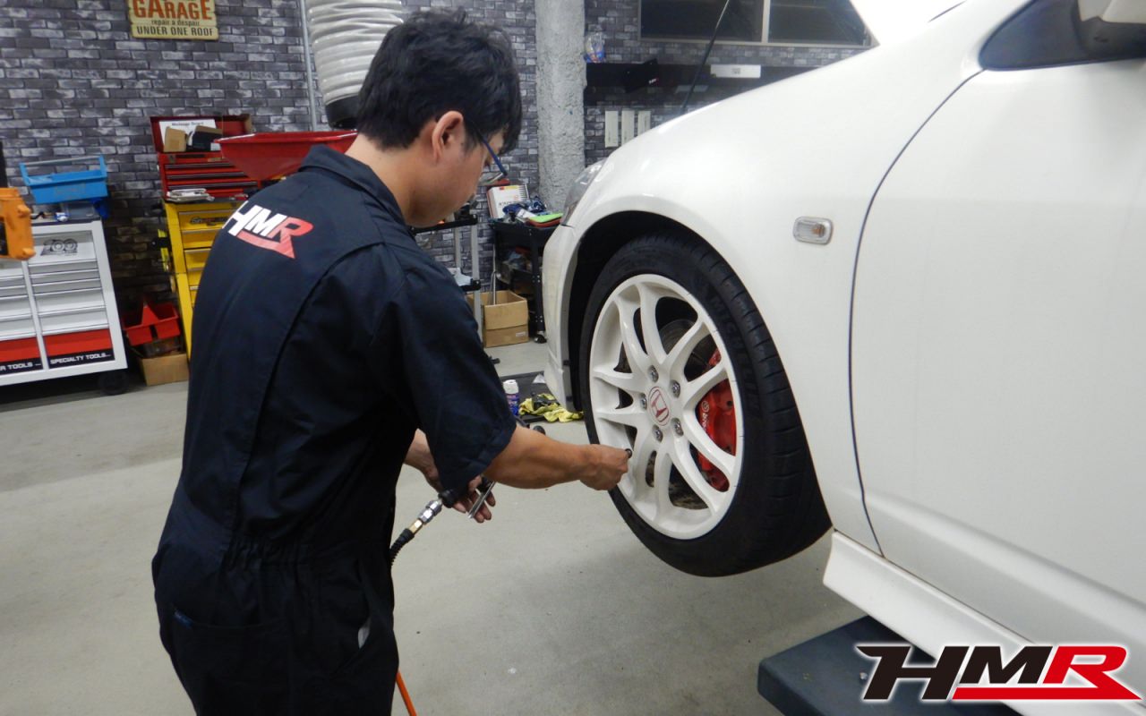 HMR(エイチエムアール)の栗原です。今回は無限マフラー エアクリBOX BRIDEシート装備のインテグラタイプR(DC5)の納車前点検整備を行いました。担当メカニックは堀口です。