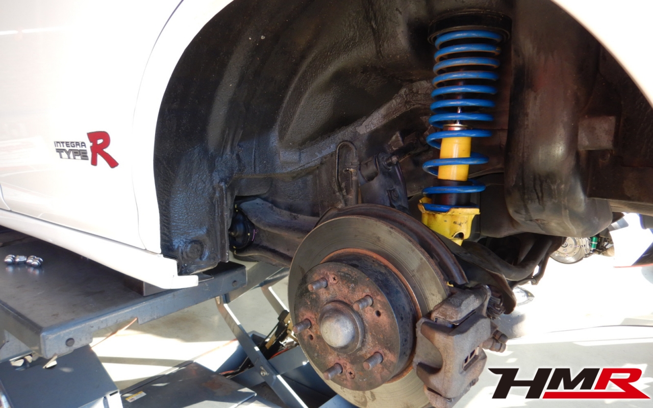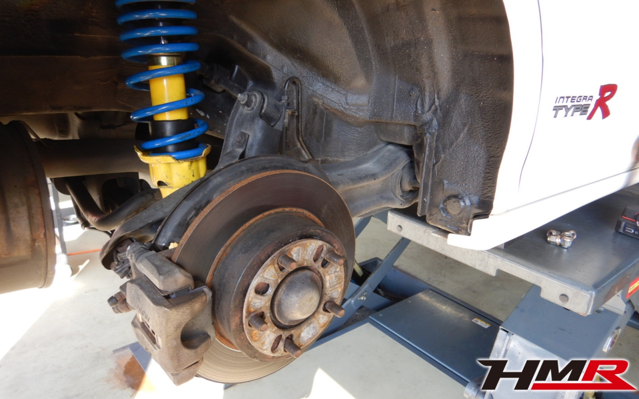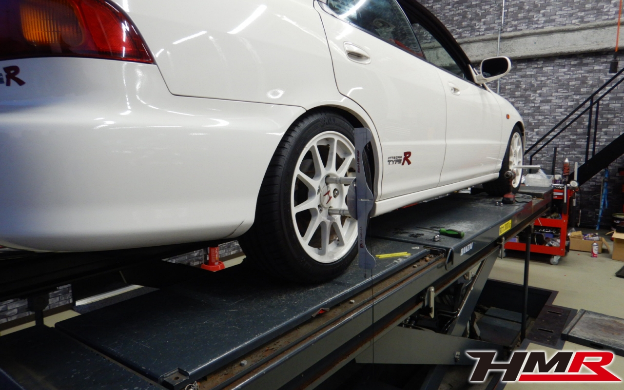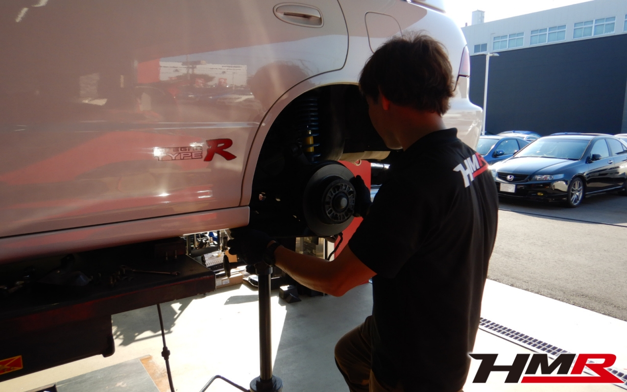 HMR(エイチエムアール)の栗原です。今回は、リアからのギシギシ音が走行中に聞こえるということでご依頼いただいたインテグラタイプR 4ドア(DB8)のトレーリングアームブッシュ交換作業のレポートになります。