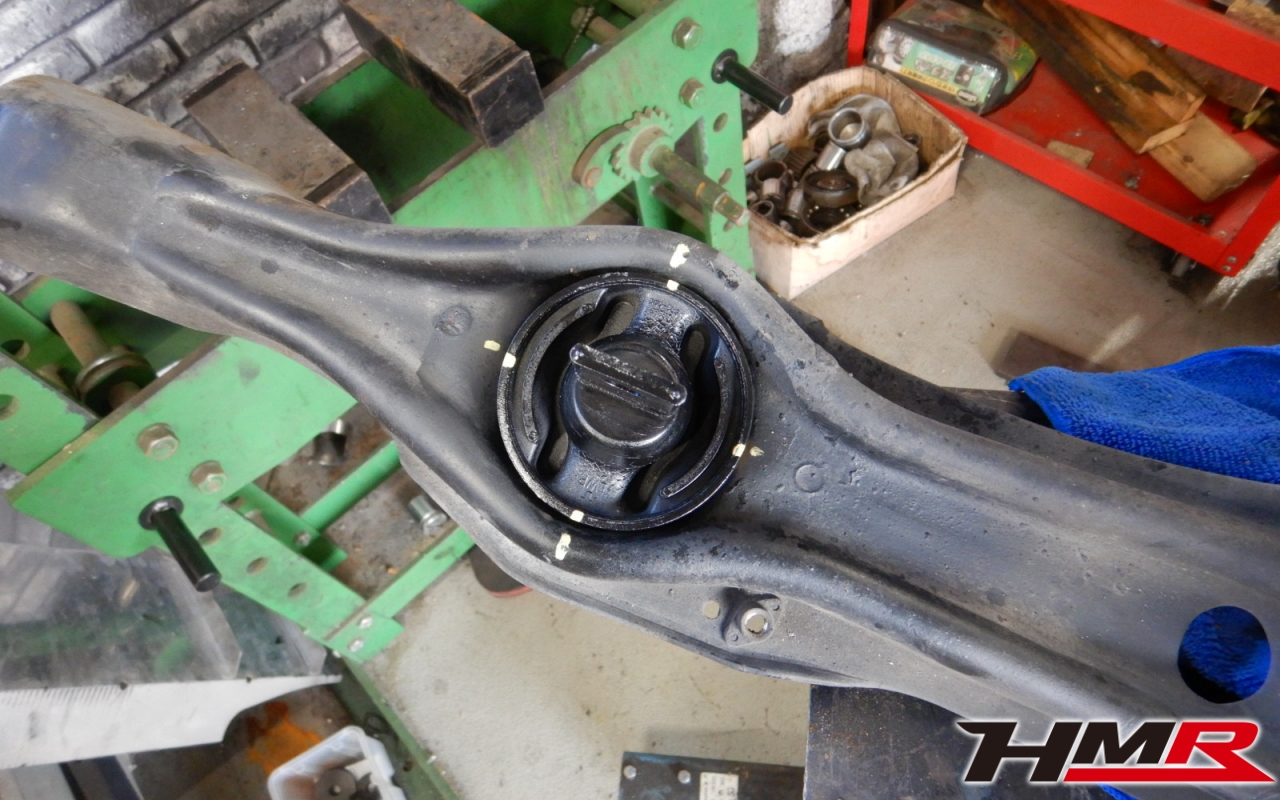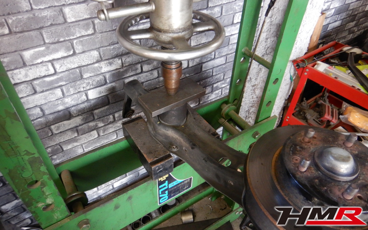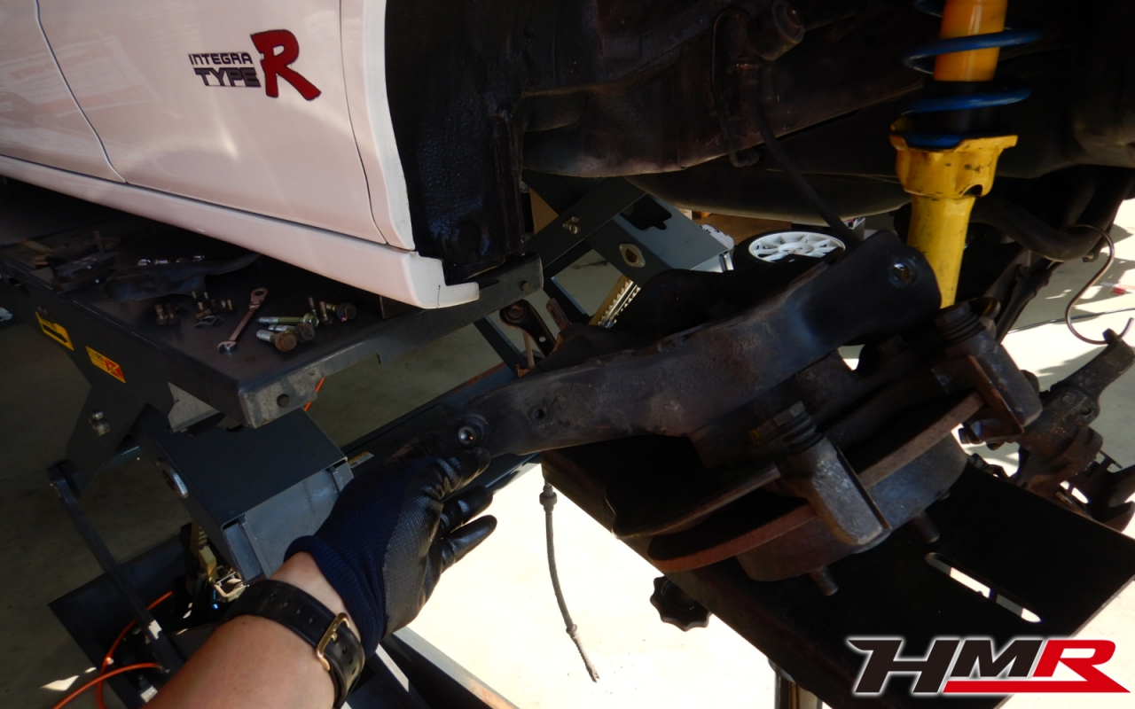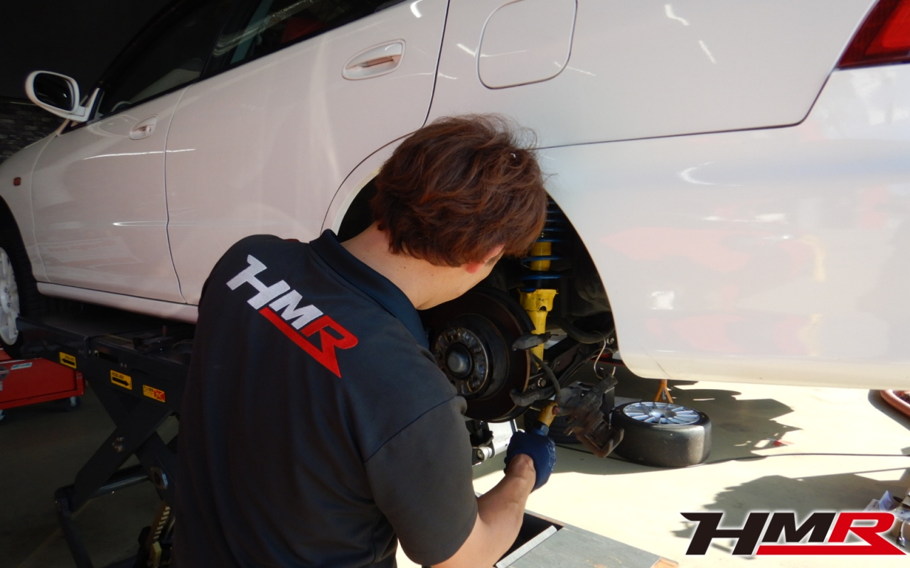 HMR(エイチエムアール)の栗原です。今回は、リアからのギシギシ音が走行中に聞こえるということでご依頼いただいたインテグラタイプR 4ドア(DB8)のトレーリングアームブッシュ交換作業のレポートになります。