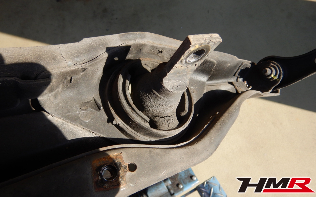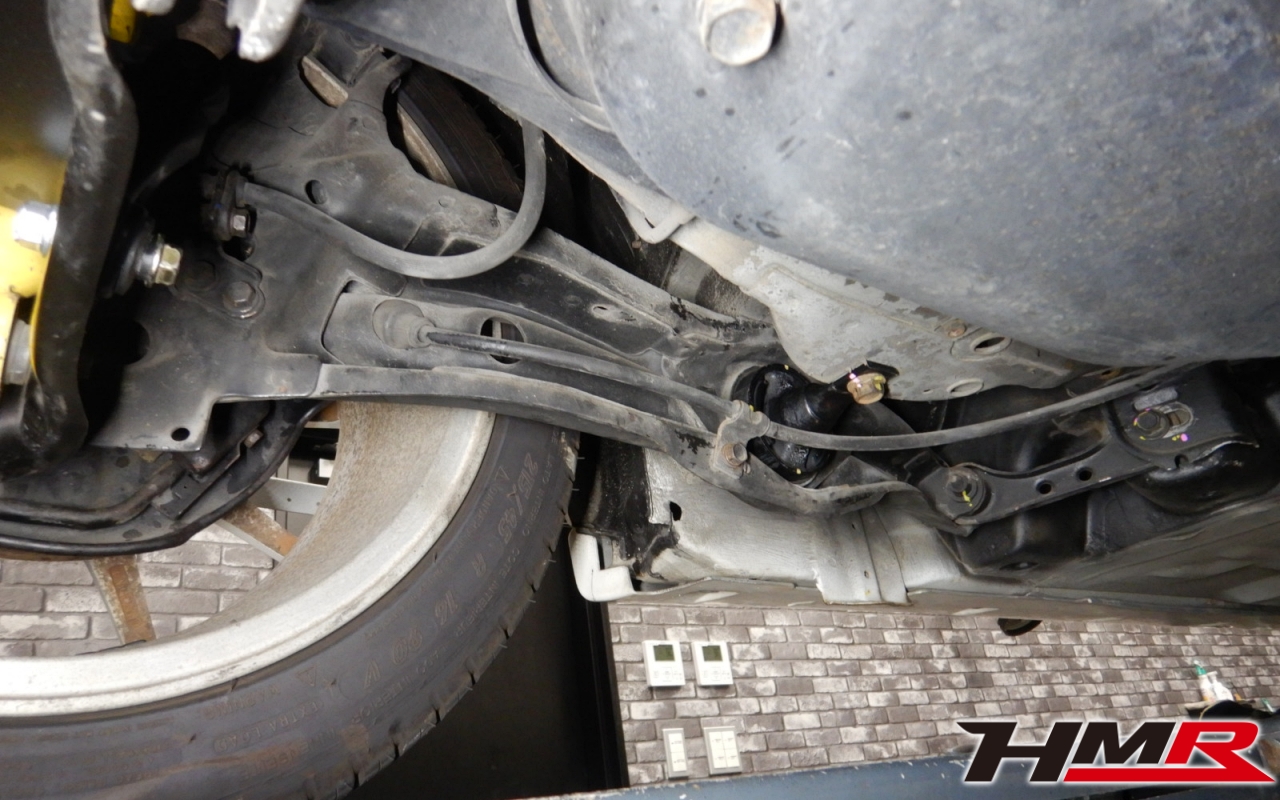 この年式の車両はトレーリングアームブッシュにほとんどの確率でガタあります。酷い車両だとブッシュがちぎれている場合もあります。