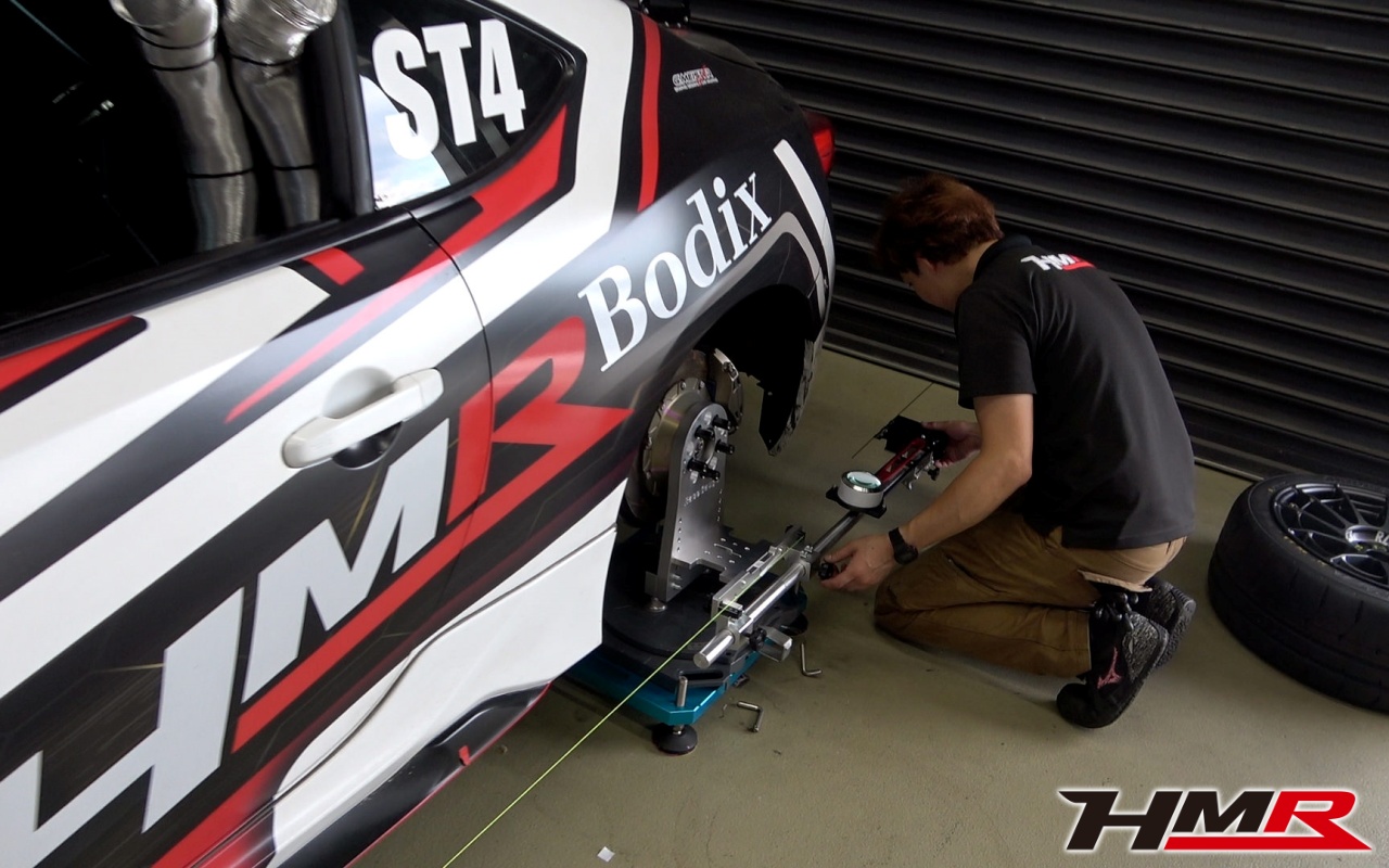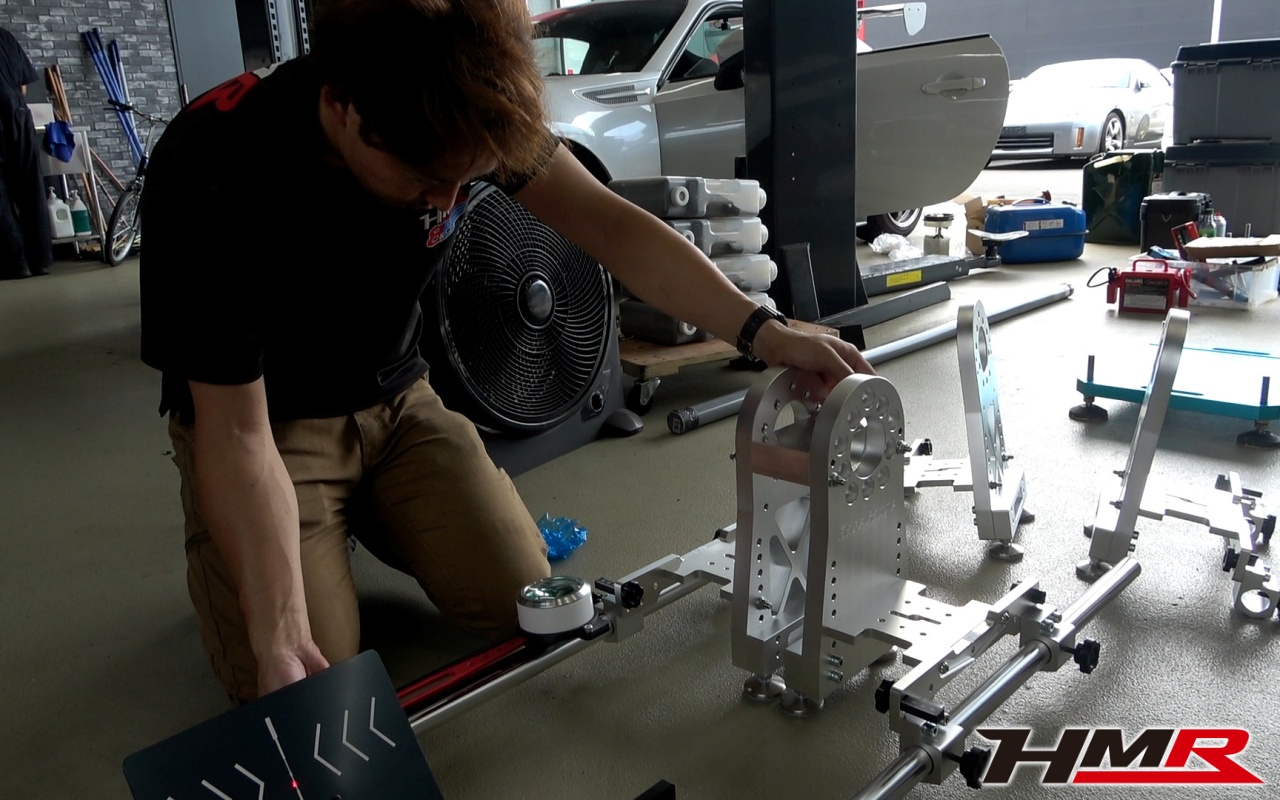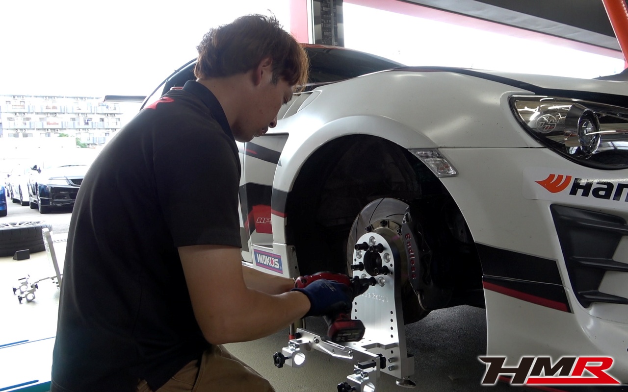 そして、最後にアライメント調整をしました。今回からレーサーゲージさんのアライメントツールを導入しました。かなり高い機材でしたが、これまでなかなか正確な数値を測定できずに苦労していましたが、このツールで全て解決です。