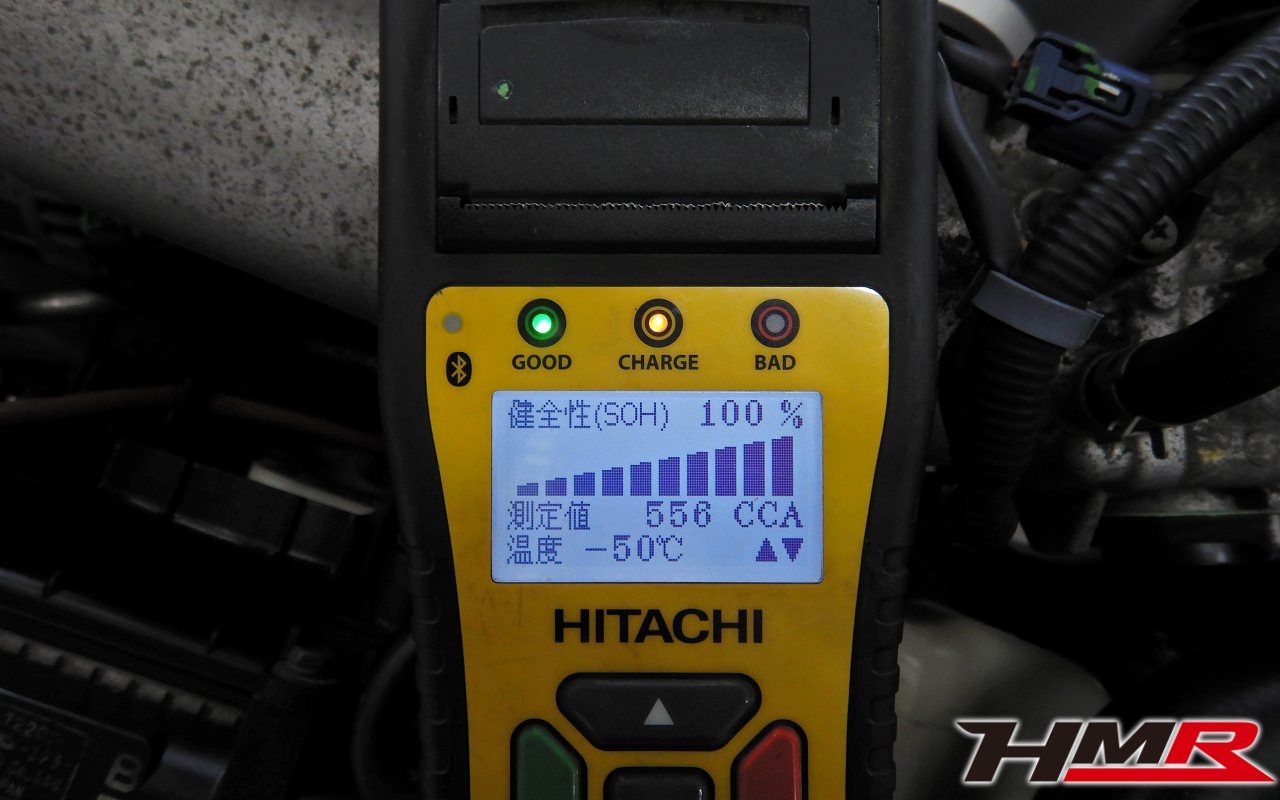 バッテリー、インテークホース、エアクリーナー、補機ベルト、プラグ、ブレーキ・クラッチマスターシリンダー、各部ゴム類の劣化、パッキン類・シール類からのオイル滲み・漏れ、ラジエターの劣化、冷却水漏れ、その他異音などをチェックしました。