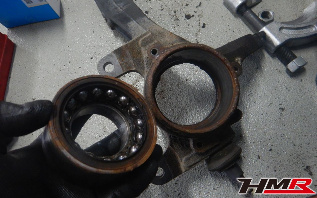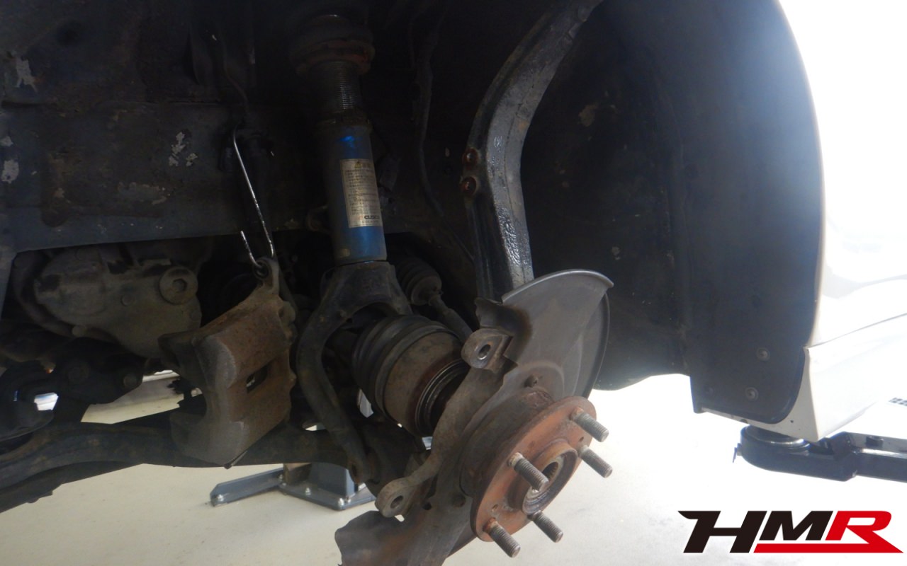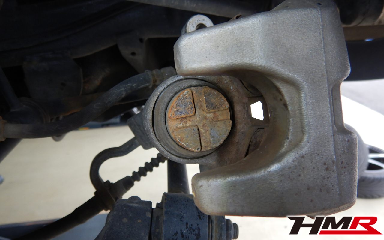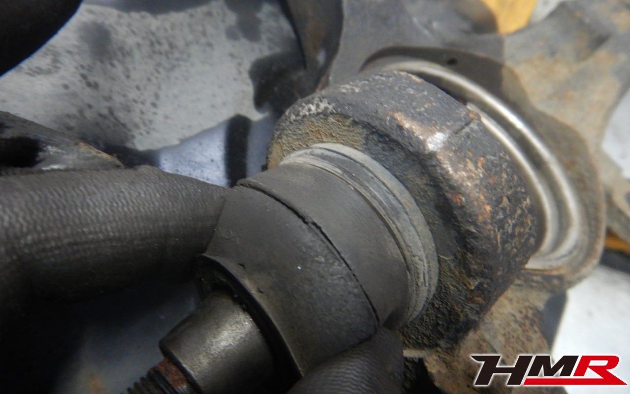 左フロントハブにガタが確認できましたので後ほど交換させていただきました。フロントロアアームブーツ、左フロントスタビリンクブーツそれぞれにブーツ切れが確認できましたのでこちらも後ほど交換させていただきました。またクラッチレリーズからフルード漏れも確認できましたので後ほど交換させていただきました。
