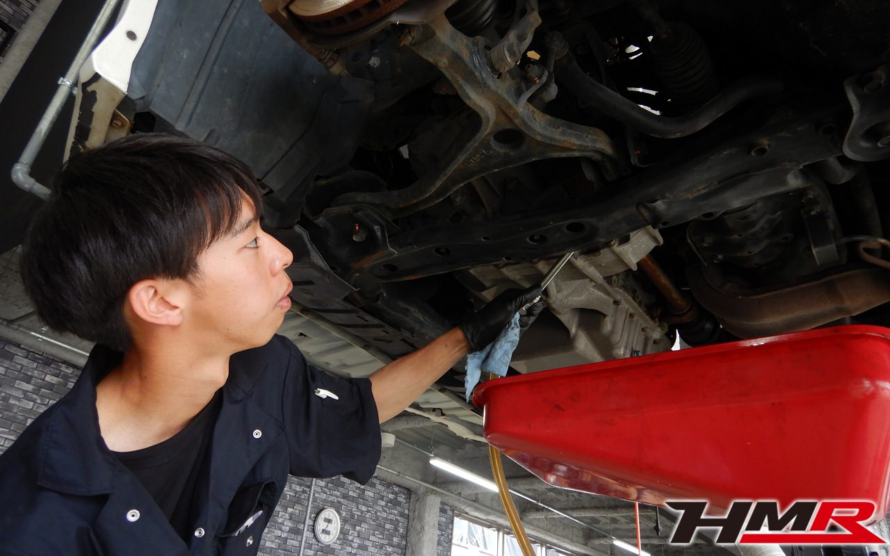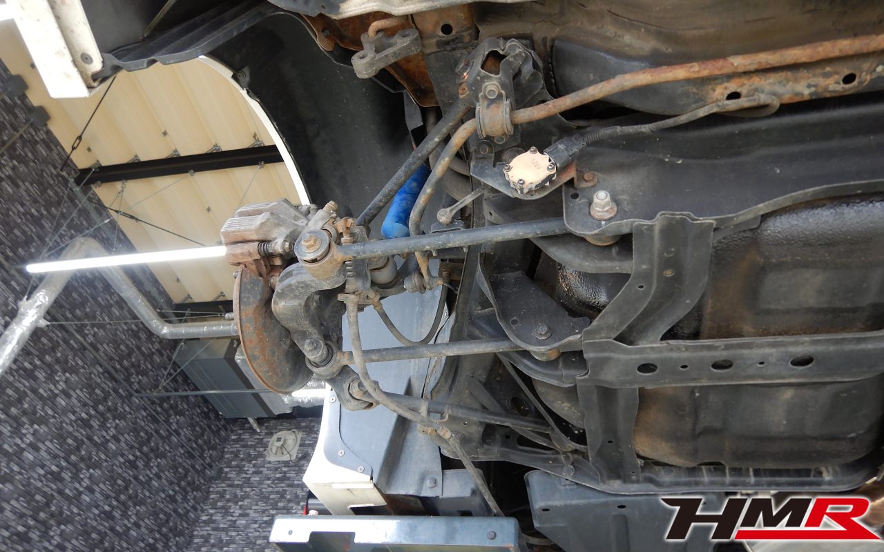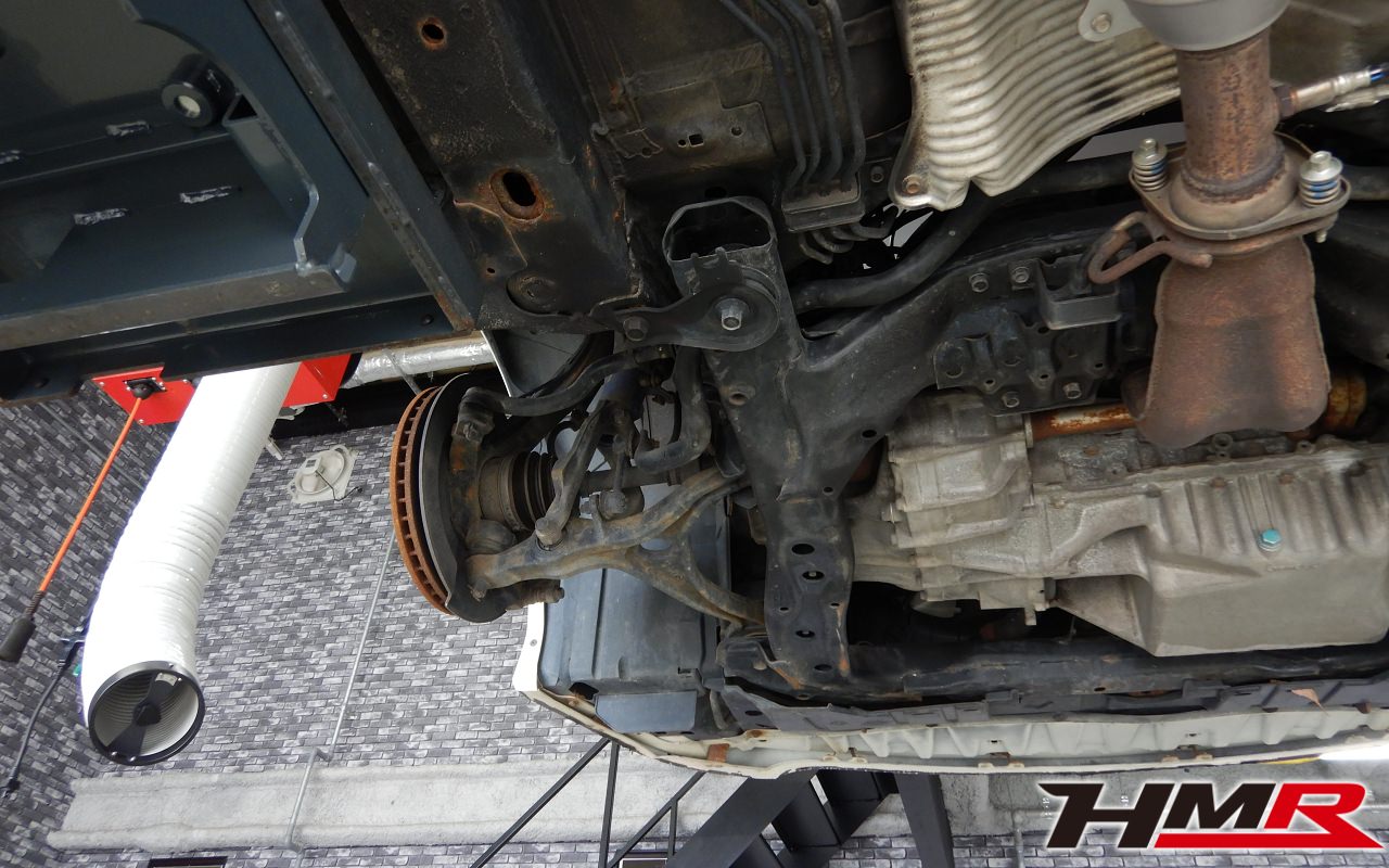 ハブベアリング・ボールジョイント、アーム・リンク類のガタ、ブッシュ・ブーツ類の劣化、エンジン・ミッション・デフからのオイル漏れと各マウント類、タイヤ溝の残量、空気圧の点検しました。