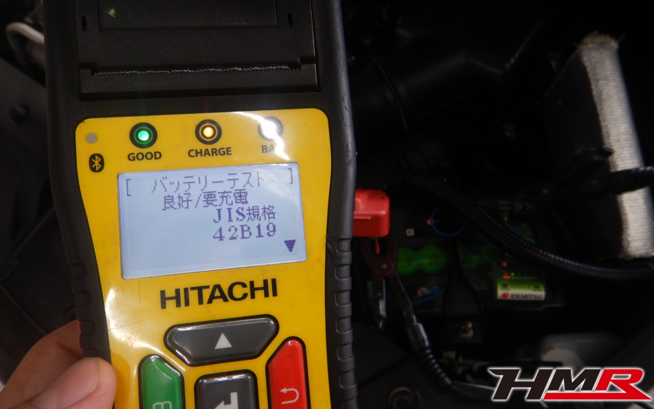 バッテリー、インテークホース、エアクリーナー、補機ベルト、プラグ、ブレーキ・クラッチマスターシリンダー、各部ゴム類の劣化、パッキン類・シール類からのオイル滲み・漏れ、ラジエターの劣化、冷却水漏れ、その他異音などをチェックしました。