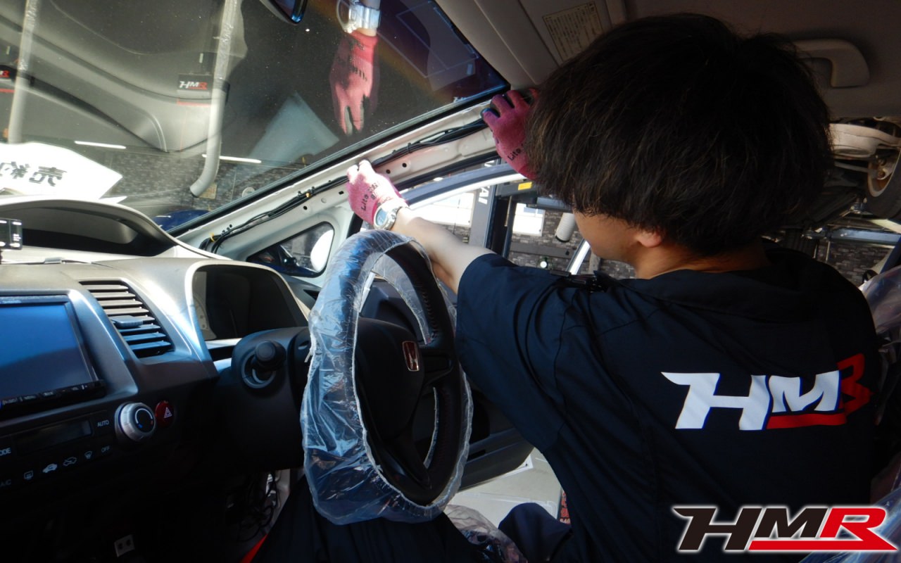 HMR(エイチエムアール)の栗原です。今回はアドバン18インチ FEEL’Sマフラー装備のシビックタイプR(FD2)の納車前点検整備を行いました。担当メカニックは大川です。