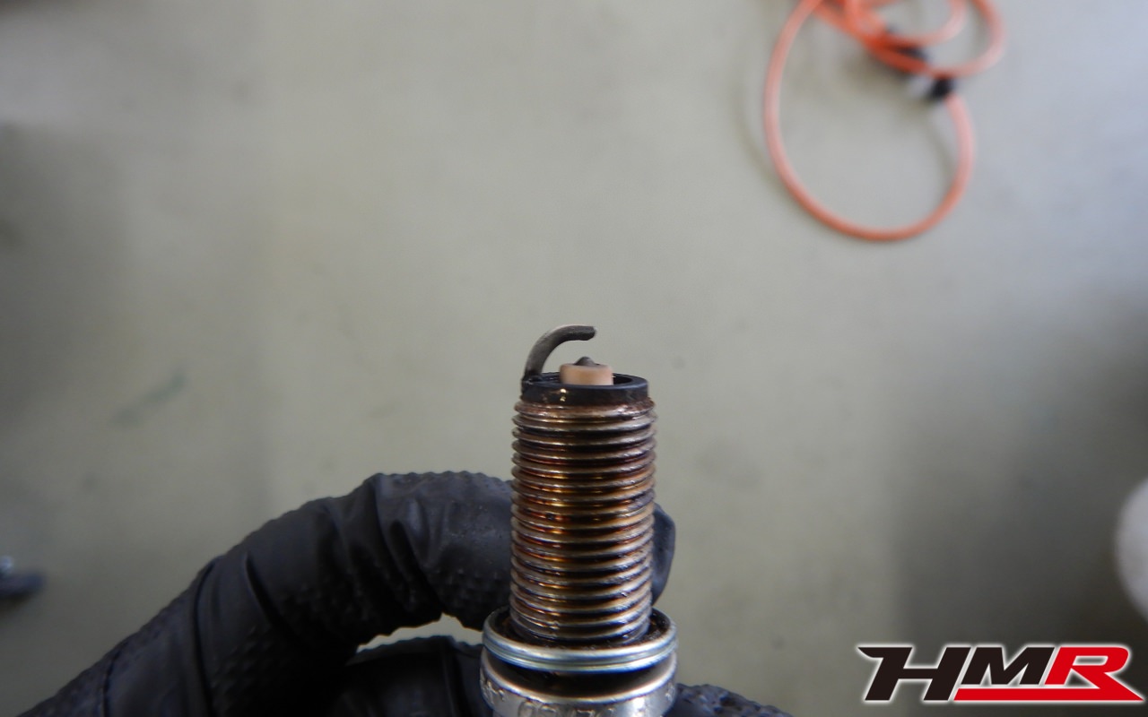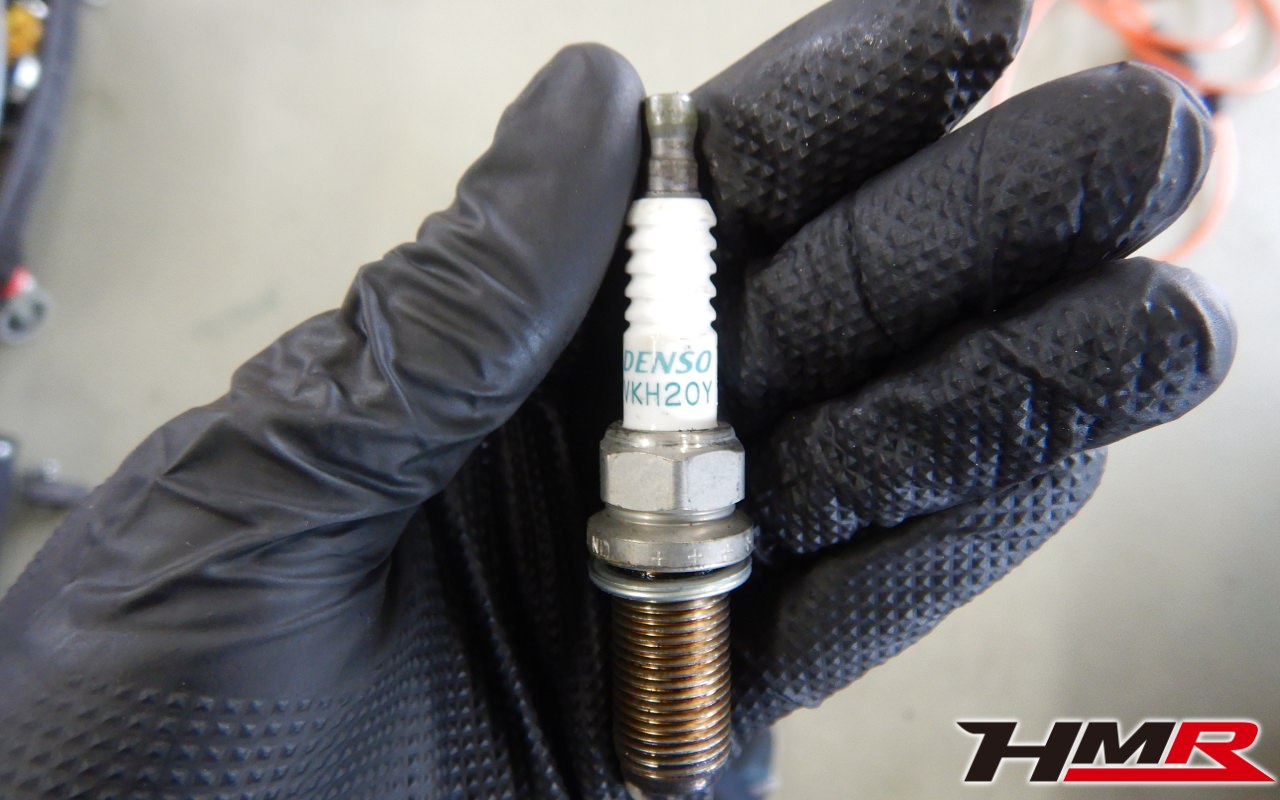 バッテリー、インテークホース、エアクリーナー、補機ベルト、プラグ、ブレーキ・クラッチマスターシリンダー、各部ゴム類の劣化、パッキン類・シール類からのオイル滲み・漏れ、ラジエターの劣化、冷却水漏れ、その他異音などをチェックしました。プラグがかなり摩耗していましたので後ほど交換させていただきました。