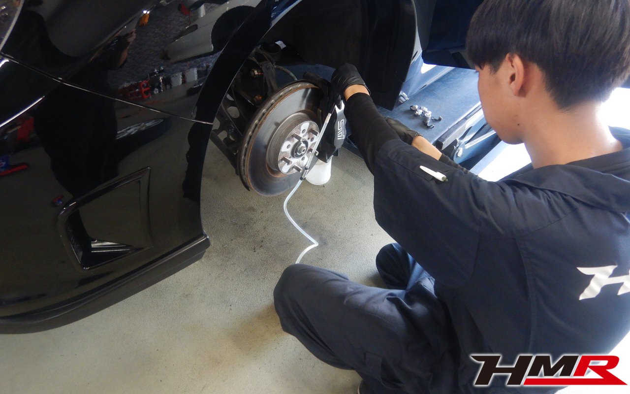 HMR(エイチエムアール)の栗原です。今回は純正18インチ STIフロントリップ装備装備のインプレッサWRX STI(GRB)の納車前点検整備を行いました。担当メカニックは手代木です。